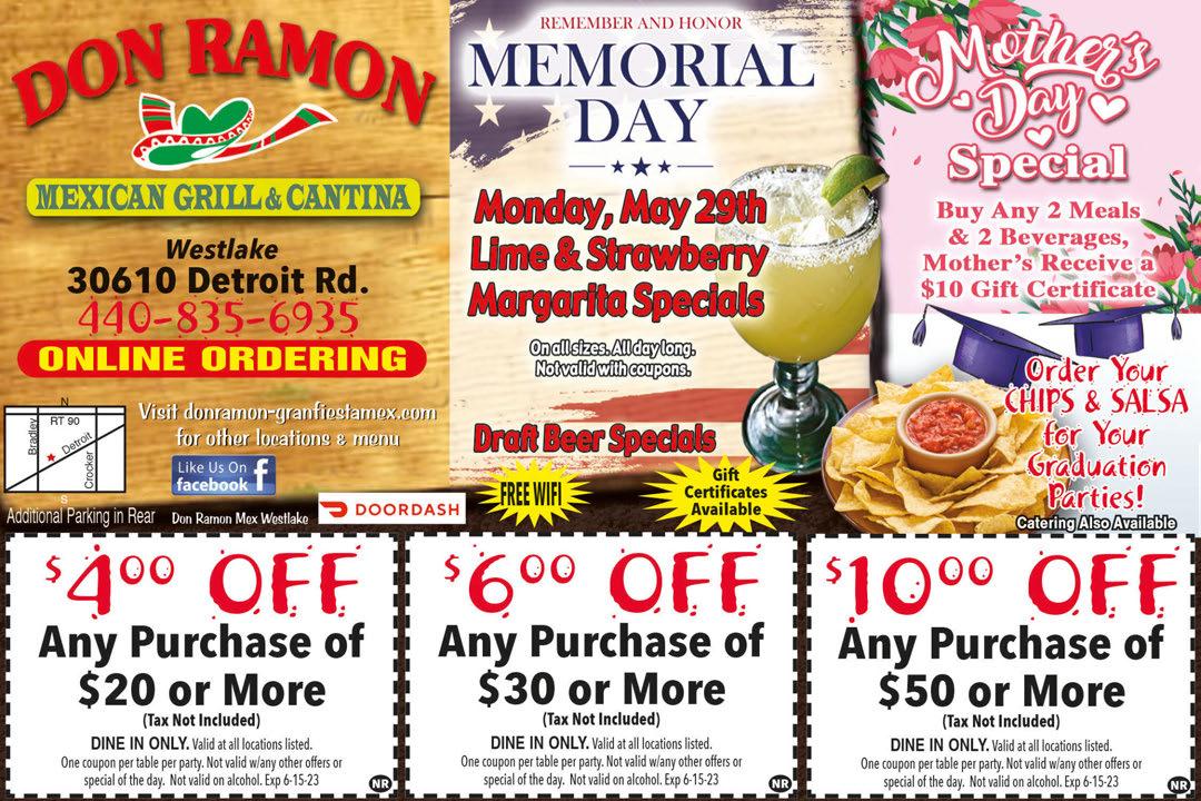 NORTH RIDGEVILLE Shop locally. Save locally. Tues-Thurs 11am-11pm•Fri & Sat 11am-1am•Sun & Mon Closed NOW OPEN! Expires15-23. Excludes Alcohol. 6Some restrictions may apply. 440-281-8885 35107 Center Ridge Rd. • North Ridgeville (Next to Aldi’s) 440-353-0091 Inventory Clearance Sale 25% off all in stock sectionals 12 inch Memory foam Queen Mattress $299 Overstock loveseats starting at $399 Must present coupon. Not valid with other offers, specials or promotions. Expires6-15-23. Only valid at North Ridgeville location. P i z z a C a l z o ne s •S t r o m b o l i • • RibsAppetizers•Wings•Subs • •S a l d s •C he e s y B r e a d S t i c k s a Order Online At orderpizzapan.com Must present coupon. Not valid with other offers, specials or promotions.Expires 6-15-23. Only valid at North Ridgeville location. Must present coupon. Not valid with other offers, specials or promotions.Expires 6-15-23. Only valid at North Ridgeville location. 33009 Lorain Rd.•North Ridgeville 440-309-4999 Pickup & Delivery Available Closed Mondays Full Lunch & Dinner Menu Near Turnpike Thin Crust Stuffed Crust Regular Crust $699 1 Topping French Bread Pizza $99 21 Jumbo Topping Pizza 2 Plus One Pound of Wings CATERING SPECIALS AVAILABLE! Give Us A Call! $599 LUNCH SPECIAL Any Small Pizza with 1 Topping No limit (10am-1pm only) NEW! MOM’S NIGHT OUT Offer expires-6-15-23 21s MediumTopping Pizza Large Cheezybread and a 2 Liter $1999 May 2023 Support LOCAL businesses!
