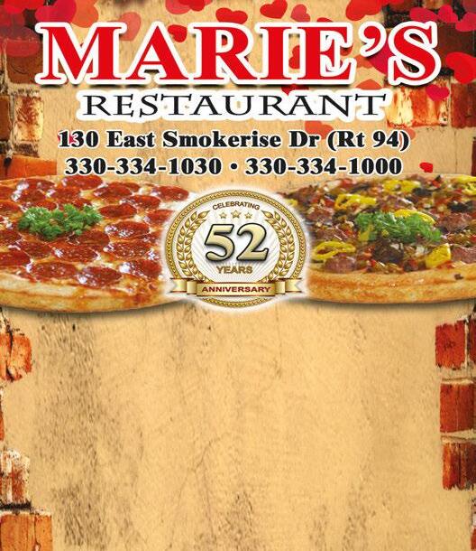 330-416-1597 | www.amyhoes.com NOW DETAILING CALL FOR AN APPOINTMENT Carry out only. Not valid with any other offer or special. Must bring in coupon. Expires 3/16/23. Large Two Items Pizza $16.99 Carry out only. Not valid with any other offer or special. Must bring in coupon. Expires 3/16/23. Not valid with any other offer or special. Must bring in coupon. Expires 3/16/23. Not valid with any other offer or special. Must bring in coupon. Expires 3/16/23. 2 Medium Two Item Pizzas $27.99 DINE-IN OR CARRY-OUT Any 2 Pasta Dinners $13.99 Choose from: Spaghetti, Penne, Rigatoni, Angel Hair, Campanelle. Includes Garlic Bread DINE-IN ONLY $5.00 OFF Any Purchase of $35 or More To Advertise Call Kelsee, 330.620.8491 • Next Issue In-Homes, March 16th • Deadline March 1st