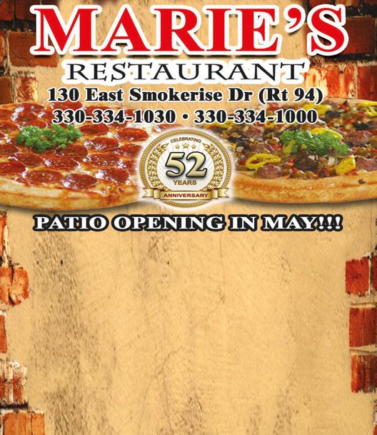 SUSHI • HIBACHI • LOUNGE 247 Great Oaks Trail Wadsworth, OH 44281 Tel: 330-334-5888 247 Great Oaks Trail Wadsworth, OH 44281 Tel: 330-334-5888 ORDER ONLINE FOR PICKUP www.hongkongbuffet5888.com Includes: Steak, Crab Legs, Ham, Baked Salmon, Fried Shrimp, Coconut Shrimp, Salt & Pepper Jumbo Shrimp and Much More NOT VALID ON MOTHER’S DAY SPECIAL. Valid only with coupons. Not valid with any other offers, specials or coupons. Coupons cannot be combined. Expires 6/15/23. $300 OFF Two Reg. Dinner Buffets NOT VALID ON MOTHER’S DAY SPECIAL. Valid only with coupons. Not valid with any other offers, specials or coupons. Coupons cannot be combined. Expires 6/15/23. $100 OFF Two Reg. Lunch Buffets CALL FOR AN INSTANT QUOTE! 440-595-3896 MORE THAN JUST A POWER WASH... WASH - RENEW - PROTECT Terms and conditions apply. Discounts only apply to house wash, roofcleaning, and concrete driveway washing and sealing services only. Not valid with any other offer. Ad must be mentioned at the time ofsale. EXPIRES5-23•CODE TMS0 6-1 5 THEGUTTERBOYS.COM GUARDS /TTER/ GUS CLEANING / GUTTER INSTALLATION / WINDOW CLEANING The Gutter Boys WITH THE #1 RATED GUARD IN AMERICA! $500 OFF Whole House Gutter Guard and/or Seamless Gutter Installation Present ad. Terms and restrictions apply. Not valid with any other offers. TMS ad must be mentioned. Offer expires5/23 TMS6/105 PROFESSIONAL GUTTER SOLUTIONS! Anthony Alberino, Owner CALL TODAY & RECEIVE SAMAS CASH E FINANCING 440-732-4056 KEN WILSON OWNER PristineCleanm.co $70 OFF $0OFF10 $0OFF13 POWER WASHING HOUSE | ROOF | CONCRETE WASH & SEAL 15 SINGLE SERVICE TWO SERVICES THREE SERVICES