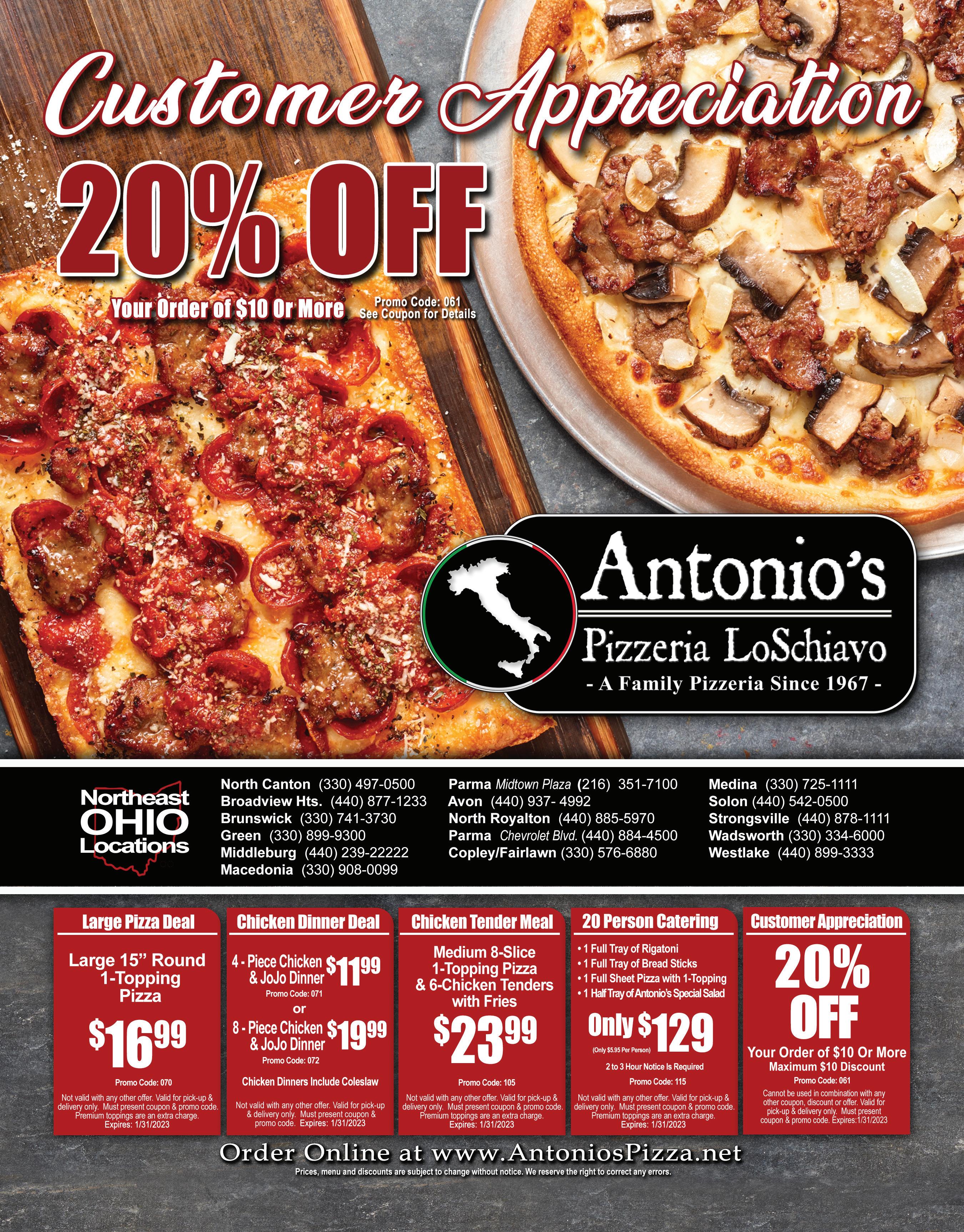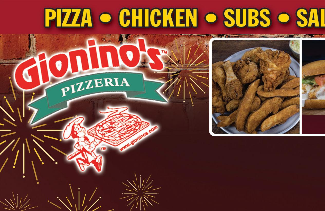 330.498.9999 5288 Fulton Drive NW Jackson-Lake Cable ORDERONLINE-QUICK,EASY&CONVENIENT www.ordergioninos.com GIONINO’S PIZZERIA Additional items $1.60, extra cheese $2.75. Coupon expires 2-2-23. Not valid with any other offer. Valid only at Jackson location. TMS GIONINO’S PIZZERIA - Additional items $2.00, extra cheese $3.20. Coupon expires 2-2-23. Not valid with any other offer. Valid only at Jackson location. TMS GIONINO’S PIZZERIA Additional items $2.00, extra cheese $3.20. Coupon expires 2-2-23. Not valid with any other offer. Valid only at Jackson location. TMS Buy Any Large Specialty Pizza Receive Small Gionino Bread FREE 1 Medium 12” 2-Item Pizza Only $1095 1 Large 16” 2-Item Pizza Only $1495 $10 Off with purchase over $100 2 Large 16” 2-Item Pizzas Only $2995 GIONINO’S PIZZERIA Additional items $2.00, extra cheese $3.20. Coupon expires 2-2-23. Not valid with any other offer. Valid only at Jackson location. TMS Family Feast Large 16” 1-Item Pizza, 8pc. Chicken & JoJo’s & Pint of Cole Slaw Only $3095 GIONINO’S PIZZERIA Additional items $1.60, extra cheese $2.75. Coupon expires 2-2-23. Not valid with any other offer. Valid only at Jackson location. TMS GIONINO’S PIZZERIA - Additional items $2.00, extra cheese $3.20. Coupon expires 2-2-23. Not valid with any other offer. Valid only at Jackson location. TMS 2 Medium 12” Pizzas Up to 2 Items Only $1795 GIONINO’S PIZZERIA - Additional items $2.00, extra cheese $3.20. Coupon expires 2-2-23. Not valid with any other offer. Valid only at Jackson location. TMS GIONINO’S PIZZERIA - Additional items $1.60, extra cheese $2.75. Coupon expires 2-2-23. Not valid with any other offer. Valid only at Jackson location. TMS 1 Large 16” 1-Item Pizza & 12 Wings Only $2795 Extra Cheese is not included as an item. You must request Daily Special when order is placed. ANY DAY OF THE WEEK! DAILY SPECIALS Medium Mania Medium 1-Item $8.75 Quick Combo Large 1-Item & Monday-Thursday 11am-10pm Friday-Saturday 11am-11pm Sunday 11am-10pm Delivery Available $12 Minimum Order to all of Jackson & Lake Cable Limited Area - Delivery Charge May Apply BEFORE BEFORE AFTER AFTER 888-323-8090 | allamericangutterprotection.com The best solution for CLOG FREE GUTTERS SUMMER SAVINGS 20% OFF Discount for all homeowners PROMO CODE: 30 Free Estimates Price stands good for one year! • Satisfaction Guaranteed. No payment required until the job is nished and you’re completely satis ed. • Lifetime Performance Guarantee. We guarantee that our products will keep your gutters free of leaves and clogs for the rest of the life of your home. • Ask us about our senior citizen & military discounts.