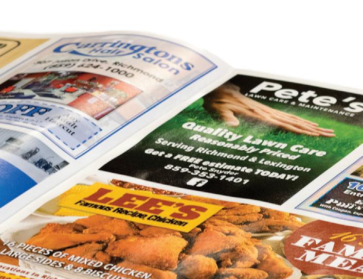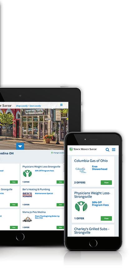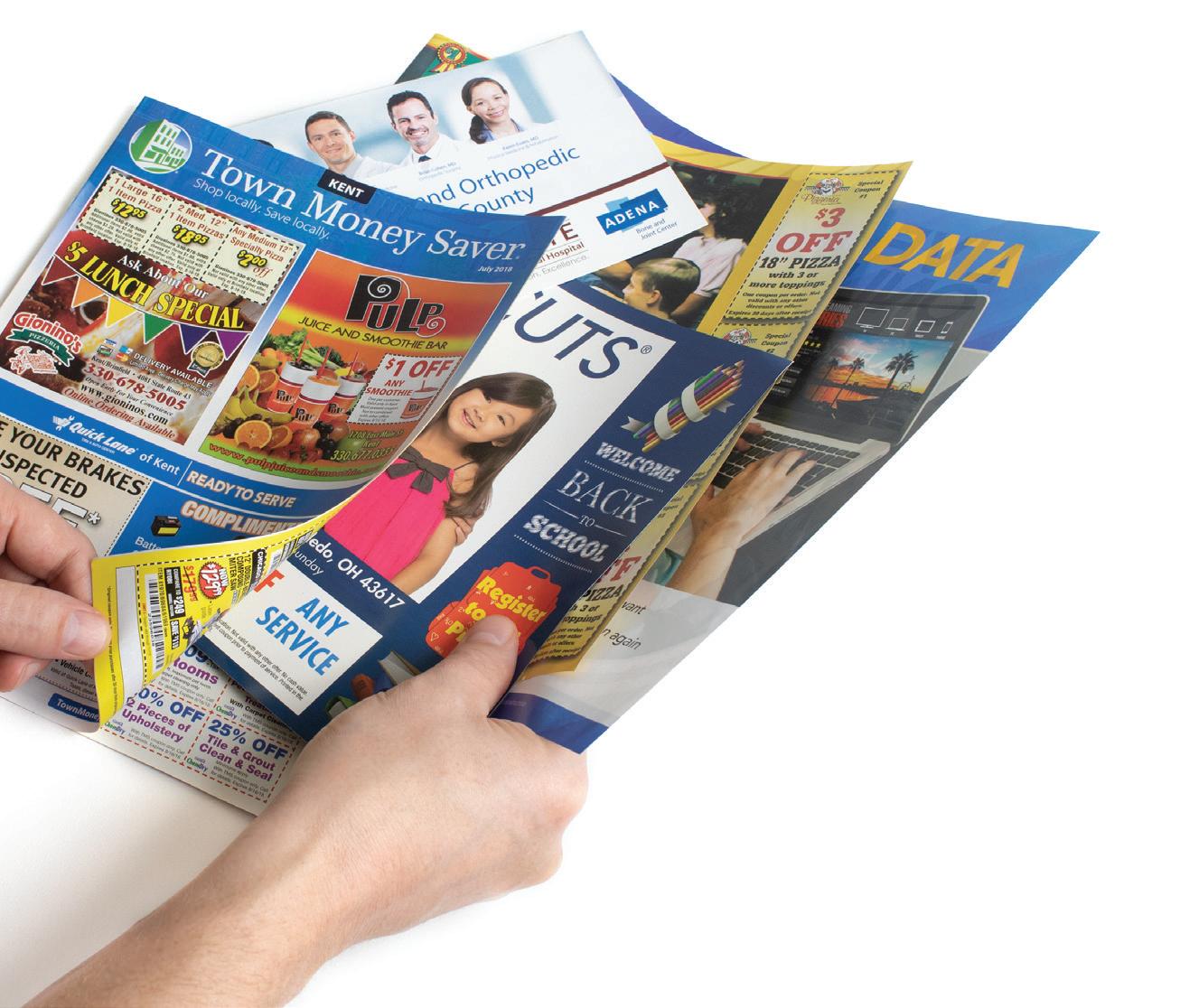 9-29-2022 9-29-2022 9-29-2022 9-29-2022 $30.00 or More Purchase $30.00 or More Purchase DINE IN/CARRYOUT AVAILABLE Fajita Quesadilla Open Labor Day! $35.00 or More Purchase $35.00 or More Purchase Savings are just a click away. townmoneysaver.com Shop locally. Save locally. Local advertising made easy. Contact Mike to get started. 330.309.6953 mikerogers@townmoneysaver.com Stand out with individual inserts. AS LOW AS 10¢ PER ADDRESS* Price includes professional graphic design, high-quality printing, inserting, and mailing via USPS. *Price for standard flat 8.5 x 11 insert. Minimum quantity of 10,000. Make a statement with your own separate piece that inserts into our magazine. We can print them for you or insert your preprinted piece. Postcards also make great inserts. Reach the right customers by choosing targeting options to suit your needs. Choose from several sizes and folding options.