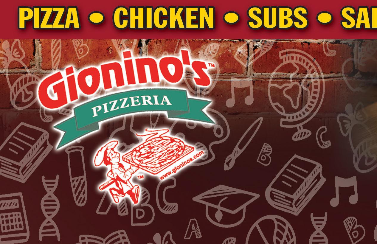 419-529-8020 1131 W. 4th St. • Mansfield 419-884-8020 176 E. Main St. • Lexington 419-589-7000 1289 Ashland Rd. • Madison Monday - Thursday 11am-10pm Friday & Saturday 11am-11pm Sunday 12pm-10pm Delivery Available - $10 Minimum Order 2 Large 16” 2-Item Pizzas Only $2995 GIONINO’S PIZZERIA - Not valid with any other offer. Valid only at Richland County locations. Expires 9-15-22 TMS GIONINO’S PIZZERIA - Specialty toppings & extra cheese excluded or additional cost. Not valid with any other offer. Valid only at Richland County locations. Expires 9-15-22 TMS GIONINO’S PIZZERIA Specialty toppings & extra cheese excluded or additional cost. Not valid with any other offer. Valid only at Richland County locations. Expires 9-15-22 TMS Any Two Subs Only $1200 2 Small 9” 2-Item Pizzas Only $1200 FAMILY FEAST 1 Large Pizza, Chicken & JoJo’s & Cole Slaw $200 OFF 2 Large 16” 2-Item Pizzas Only $2895 GIONINO’S PIZZERIA Specialty toppings & extra cheese excluded or additional cost. Not valid with any other offer. Valid only at Richland County locations. Expires 9-15-22 TMS GIONINO’S PIZZERIA Specialty toppings & extra cheese excluded or additional cost. Not valid with any other offer. Valid only at Richland County locations. Expires 9-15-22 TMS GIONINO’S PIZZERIA Specialty toppings & extra cheese excluded or additional cost. Not valid with any other offer. Valid only at Richland County locations. Expires 9-15-22 TMS GIONINO’S PIZZERIA Specialty toppings & extra cheese excluded or additional cost. Not valid with any other offer. Valid only at Richland County locations. Expires 9-15-22 TMS GIONINO’S PIZZERIA - Specialty toppings & extra cheese excluded or additional cost. Not valid with any other offer. Valid only at Richland County locations. Expires 9-15-22 TMS Any Medium 12” Pizza $200 OFF Small 9” 2-Item Pizza & Any Sub Only $1295 2 Medium 12” 2-Item Pizzas Only $2400 Any Large 16” Pizza $300 OFF Signuptobea Gionino’s VIP! www.gioninos.com Gionino’s VIP Club