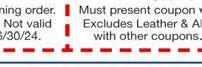 • Reliable Detailing • Rust Proofing • Paint Protection • Undercoating • Let Us Sanitize Your Vehicles 3235 Holland-Sylvania Rd Toledo 43615 419.841.4646 TSTOfToledo@gmail.com Make us your first stop for your AUTO PROTECTION! Exceptional Auto Detailing, Protection Packages & Window Tinting Services! Present This Gift Certificate for 10% OFF • Window Tinting • Undercoating • Rust Proofing TST Appearance With TMS coupon. Not valid other offers. Expires 4/30/24 Give Your Vehicle A COMPLETE MAKE-OVER TODAY! Let’s Get Ready For Spring! Let’s ReadyGet Spring!For Coupon required. No other discounts. Expires 5.15.24 Includes pads, rotors & service calipers. Plus tax. Most cars & lg. trucks. Coupon required. No other discounts. Expires 5.15.24 Coupon required. No other discounts.Not valid on tires or batteries.Expires 5.15.24 5W20 or 5W40. Most cars & Lt trucks. Up to 5 qts. Full synthetic extra. Coupon required. Plus tax & disposal fee. No other discounts. Expires 5.15.24 In-store savings. Coupon & Installation required. No other discounts apply. Expires 5.15.24 5-STAR TIRE SERVICE LOCALLY OWNED SINCE 1917 $50 off 5-STAR TIRE SERVICE any four tires TMS $2795 TMS TMS TMS TMS TMS FAST SEMI-SYNTHETIC Oil Change with FREE inspection and FREE tire rotation 5W20 or 5W40. Most cars & Lt trucks. Up to 5 qts. Coupon required. Plus tax & disposal fee. No other discounts. Expires 5.15.24 $4795 FAST FULL SYNTHETIC Oil Change with FREE inspection and FREE tire rotation $9995 A/C Tune-up plus tax INCLUDES: • Visual inspection of A/C components • Inspect for leaks • Check refrigerant system pressures • Check HVAC vent temperatures • Check HVAC mode operation • Inspect refrigerant charge points of leaking and contamination •Check refrigerant system capacity, refill systems up to 1 lb. of R134A refrigerant • Add refrigerant dye $329 BRAKE Service Special Per Axel with FREE brake inspection $15 off ALIGNMENT SERVICE with FREE alignment check Westgate .......4544 Monroe St................ 419-479-7350 Southwyck.... 5329 Heatherdowns Blvd ... 419-865-5584 Whitehouse ..10829 Logan St................ 419-877-5330 3 CONVENIENT LOCATIONS WHITEHOUSE 419-877-5330 open 7:30am-5pm Mon-Fri 10829 LOGAN ST ONE BLOCK OFF PROVIDENCE ST LOCALLY OWNED OVER 100 YEARS FREE COFFEE Check Engine Light On? WE CAN FIX THAT! FREE SHUTTLE SERVICE TO AND FROM YOUR WORK OR HOME BANDLAUTOSERVICE.COM