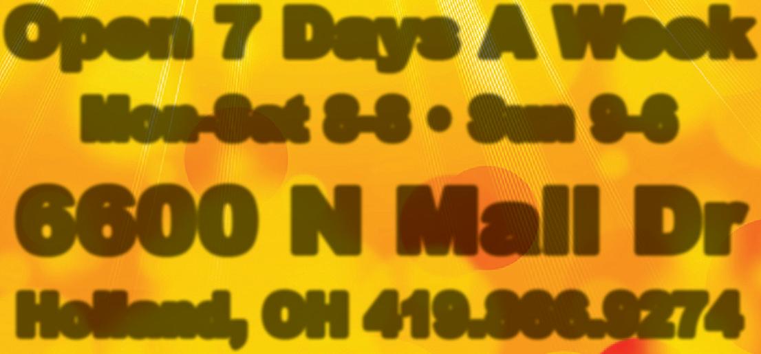 We remove dangerous trip hazards & negative drainage DUE TO SUNKEN CONCRETE SURFACES on: Patios, Garage Floors, Sidewalks & Driveways CallPete! We accept all major credit cards. 3% charge on credit/debit transactions. 10% OFF with this ad 419-351-4124 A+ MidwestConcreteLeveling.com Free Estimates We do Concrete POWERWASHING & SEALING! Sunken Concrete? Water Puddles Along Foundation? WE CAN HELP! Midwest Concrete Leveling & Sealing, LLC Maximum discount $200.00 Please present coupon at time of estimate. Not valid with other offers. Expires 7/31/22 1815 SYLVANIA AVE. • TOLEDO • 419-472-2040 AIR CONDITIONING • Central Air Conditioning • Mini-Split Air Conditioning RETAIL PARTS CENTER Appliance Parts • Air Conditioners • Boilers & Furnaces • Water Heaters FILTERS & HUMIDIFIERS • WATER HEATERS We Service All Brands Of Air Conditioners, Furnaces & Boilers Are you tired of that old furnace breaking down? A new high efficient gas furnace can save up to 40% on your gas bill. Call us today for your FREE ESTIMATE! HEATING • Gas Boilers • Gas & Electric Furnaces up to $30000 UTILITY REBATE Complete Cleaning & Safety Inspection $99 A/C or Furnace One coupon per purchase. Must present coupon at time of estimate. Not valid with any other offer. Exp. 7/31/22 SAVE $100 On a New A/C or Furnace One coupon per qualified purchase. Must present coupon at time of estimate. Not valid with any other offer.Exp. 7/31/22 SAVE $200 On a A/C & Furnace One coupon per qualified purchase. Must present coupon at time of estimate. Not valid with any other offer. Exp. 7/31/22 TRY A SPECIALTY SALAD! 3220 Briar eld Blvd. Maumee • 419.865.7260 $4.29 Mon-Fri 7am-10am 2 EGGS any style, potatoes, toast and COFFEE! ALL YOU CAN EAT! Alaskan Pollock - Deep Fried or Broiled, Choice of Potato and Soup or Salad! No coupon accepted with this offer. EVERY FRIDAY FISH FRY 11.99 $ breakfast coupon lunch coupon dinner coupon No coupon accepted with this o er. Enjoy Our MON-FRI • 7-10am Omelets, Eggs & Benedicts THANK YOU FOR YOUR SUPPORT! BREAKFAST SERVED ALL DAY!
