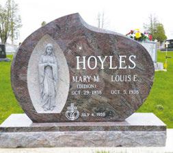 836 Lime City Rd., Rossford (567) 833-7079 sales@pmonument.com www.pmonument.com/ FREE DESIGN CONSULTATION Bring us your ideas and we will help you create a beautiful monument or headstone for your loved one. Not sure where to begin? Give us a call and we can talk more about how we can make your memorial vision a reality. Serving Families in NW Ohio & SE Michigan Precision Monument & Headstone of Toledo We help families design & create beautiful monuments that preserve the special memories of a lifetime. We are a one-stop solution, providing everything from small inlay ceramics and grass markers to towering veteran memorials and mausoleums.
