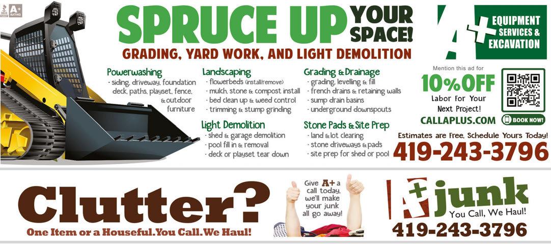 EARLY BIRD SPRING SPECIAL 25% OFF Whole House Gutter Helmet Job additional 5% Discount for Seniors 419.475.0000 With TMS coupon. Not valid with other offers. Exp. 4/15/24 NEVER CLEAN YOUR GUTTERS AGAIN® of NW Ohio Made of Metal - NOT Plastic! It Won’t Clog - It’s NOT a Filter! FEATURING • Trusted For 40+ Years • Ranked #1 by Forbes • Lifetime Transferable Warranty • Easy Payment Options Available • Installs over new or existing gutters • We also install new gutters without the helmet protection SCAN ME