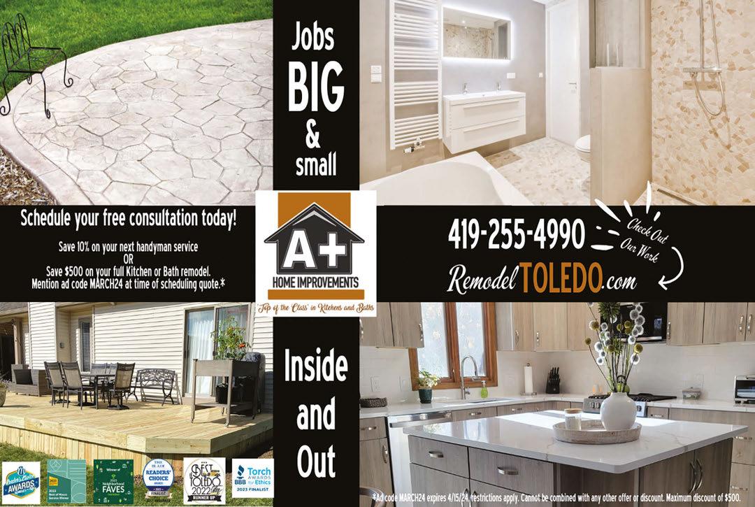 10% OFF Your Total Check the Briarfield Cafe With TMS coupon. Dine-in only. One coupon per check. Not valid with other offers, or on holidays, or with any other specials. Expires 3/31/24 breakfast coupon 10% OFF Your Total Check the Briarfield Cafe With TMS coupon. Dine-in only. One coupon per check. Not valid with other offers, or on holidays, or with any other specials. Expires 3/31/24 10% OFF Your Total Check the Briarfield Cafe With TMS coupon. Dine-in only. One coupon per check. Not valid with other offers, or on holidays, or with any other specials. Expires 3/31/24 lunch coupon dinner coupon OPEN 7AM 7 Days A Week! Breakfast • Lunch • Dinner ALL YOU CAN EAT! Alaskan Pollock (fried or broiled) $13 99 Choice of potato & soup or salad Not valid with other coupons. Price may change due to market costs. Lenten Special every Friday St. Paddy’s Dinner $15 95 No coupon accepted with this offer/ Try Our Homemade Soups! Breakfast Served All Day! Dine-In & Carry Out Prices may vary throughout the month 3220 Briarfield Blvd. Maumee 419.865.7260 www.briarfieldcafe.com Briarfield Café t h e JIGGS Dinner Sunday March 17 11am-8pm 1815 SYLVANIA AVE. • TOLEDO • 419-472-2040 AIR CONDITIONING • Central Air Conditioning • Mini-Split Air Conditioning RETAIL PARTS CENTER Appliance Parts • Air Conditioners • Boilers & Furnaces • Water Heaters FILTERS & HUMIDIFIERS • WATER HEATERS We Service All Brands Of Air Conditioners, Furnaces & Boilers Are you tired of that old furnace breaking down? A new high efficient gas furnace can save up to 40% on your gas bill. Call us today for your FREE ESTIMATE! HEATING • Gas Boilers • Gas & Electric Furnaces Complete Cleaning & Safety Inspection $119 Furnace or A/C One coupon per qualified purchase. Must present coupon at time of estimate. Not valid with any other offer. Exp. 3/31/24 SAVE $100 On a New Furnace or A/C One coupon per qualified purchase. Must present coupon at time of estimate. Not valid with any other offer. Exp. 3/31/24 SAVE $200 On a Furnace AND A/C One coupon per qualified purchase. Must present coupon at time of estimate. Not valid with any other offer. Exp. 3/31/24