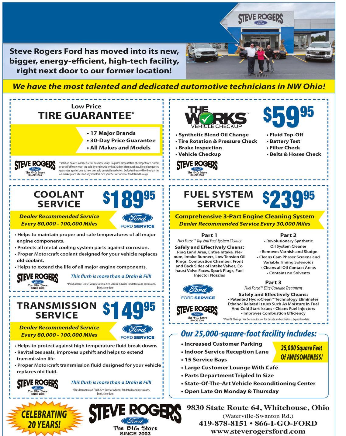 Rogers Ford “We’ve Expanded” And Moved Right Next Door To Better Serve You!! 9830 State Route 64 Whitehouse, OH 43571 (419) 878-8151 steverogersford.com