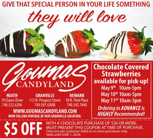 NEWARK • HEATH • GRANVILLE Published By Town Money Saver, Inc. Corporate Office • PO Box 356 • Lucas, OH 44843 © 2018 TMS Franchising, Inc. All rights reserved. For advertising information, call Sharon 614-679-8160 NEXT ISSUE IN HOMES: May 31, 2024 ADVERTISING DEADLINE: May 15, 2024 PRSRT STD ECRWSS U.S. POSTAGE PAID Town Money Saver, Inc.