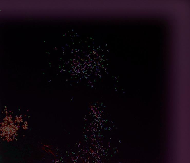 Provolone cheese, ham, green peppers, mushrooms, pineapple, topped by an additional layer of cheese, sprinkled with coconut and almonds