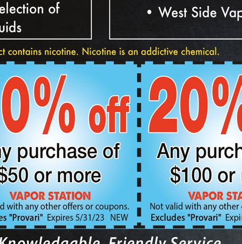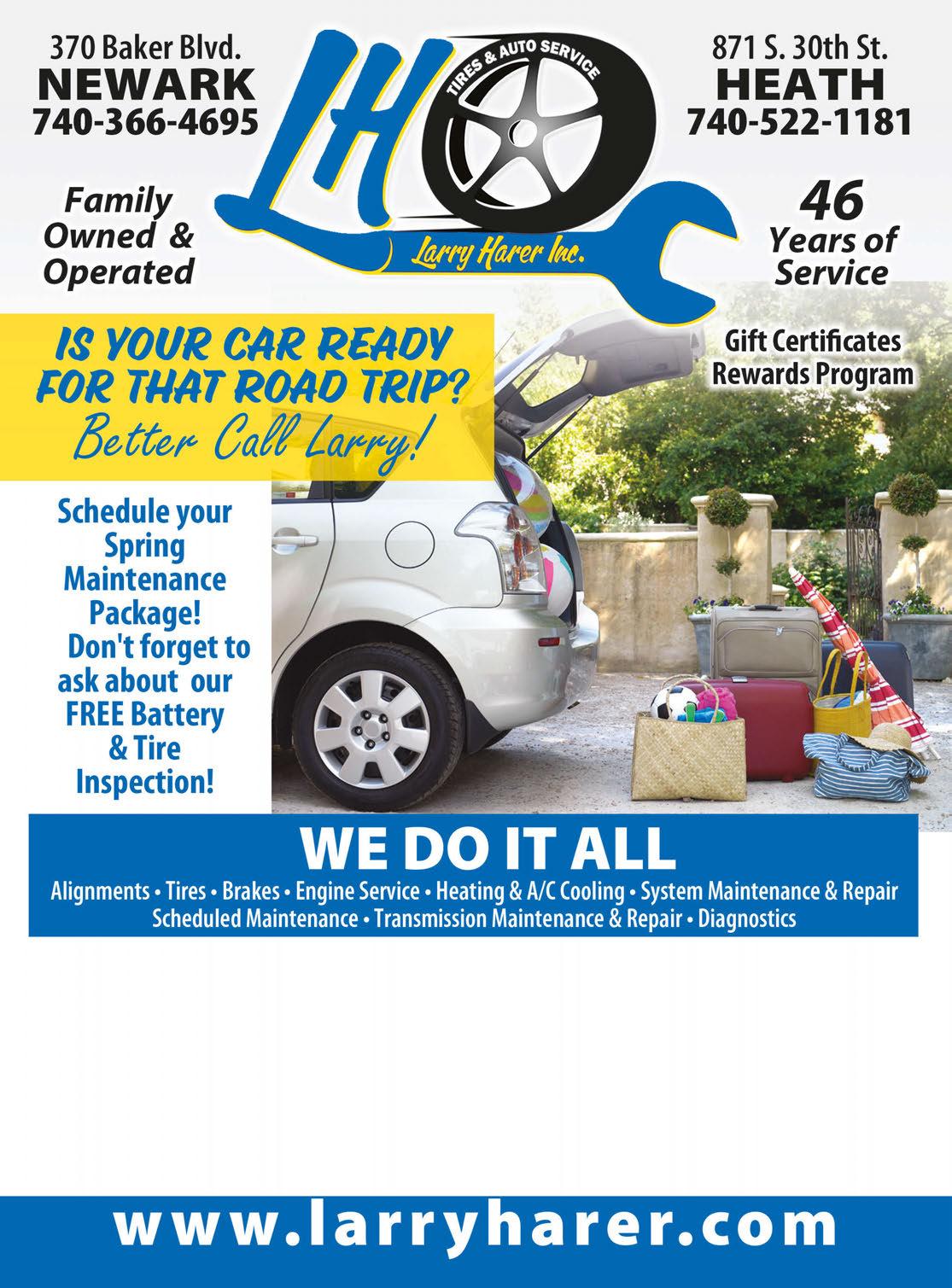 NEWARK • HEATH Published By Town Money Saver, Inc. Corporate Office • PO Box 356 • Lucas, OH 44843 © 2018 TMS Franchising, Inc. All rights reserved. For advertising information, call Sharon 614-679-8160 NEXT ISSUE IN HOMES: June 1, 2023 ADVERTISING DEADLINE: May 17, 2023 PRSRT STD ECRWSS U.S. POSTAGE PAID Town Money Saver, Inc. townmoneysaver.com 200 W. High St. MT. VERNON 740-326-9199 1830 Hebron Rd HEATH 740-522-4351 1080 Linden Avenue ZANESVILLE 740-453-3311 1021 N. Memorial Dr. LANCASTER 740-422-8588 No other discounts apply. Valid with coupon. Offer expires 6/1/23. Limit one. No other discounts apply. Valid with coupon. Offer expires 6/1/23. No other discounts apply. Valid with coupon. Offer expires 6/1/23. $5 OFF $10 OFF Car/Truck Battery 24-Pack of Ultra Pro AA or AAA $5 OFF A Pair of Clearplus Wiper Blades 34 South 2nd Street, Newark, OH 43055 (740) 345-9656 SPRING PACKAGE (Up to 5 quarts conventional oil) Must present coupon. Expires 6/1/2023. $69.95 INCLUDES: Oil Change • Tire Rotation Regular Wiper Blades • Alignment, Antifreeze, Battery & Belt Checks OIL CHANGE $34.95 A/C SPECIAL $39.95 Add’l $2.50 oil disposal surcharge (up to 5 quarts conventional oil) Includes FREE Tire Rotation. Must present coupon. Expires 6/1/2023. (includes recovery, vacuum, oil/dye) Refrigerant extra $21.95/lb. Must present coupon. Expires 6/1/2023. FREE ESTIMATES WE DO IT ALL!
