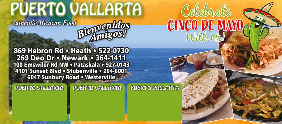 $10 OFF $25 OFF Any Carpet Services We Offer! Expires 6/1/23. Any Duct Cleaning Service Expires 6/1/23. $5 OFF Any Order of $30 or More Puerto Vallarta • Newark-Heath-Pataskala -Stubenville. Not valid with any other offers. Valid with coupon. Expires 6/1/23. HAPPY HOUR 2-6PM! Daily Lunch Specials 15% OFF Total Bill Puerto Vallarta • Newark-Heath-Pataskala -Stubenville. Not valid with any other offers. Valid with coupon. Expires 6/1/23. 15% OFF Total Bill Puerto Vallarta • Newark-Heath-Pataskala -Stubenville. Not valid with any other offers. Valid with coupon. Expires 6/1/23. GIFT CERTIFICATES AVAILABLE FULL SERVICE BAR BEER, LIQUOR & MIXED DRINKS AVAILABLE 7 DAYS A WEEK Like and Follow Us For Hot Deals! Indian Mound Mall (Across From Kay Jewelers) 740-641-2029 **Receive a Special Discount With is Ad**