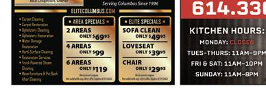 $38999 Simplicity S65P Stick Vacuum Included Accessories: • Cordless • Battery Operated • Bagless • Includes: Pet Nozzle RS1030 • Cordless Stick Vacuum • 40 Minute Cleaning Time $9999 Carmen’s Vacuum WESTERVILLE 320 S. State St. 614-882-8400 NORTH 9709 Sawmill Rd. 614-761-0199 CENTRAL 5520 N. High St. 614-846-9915 SHOP ONLINE 24/7 www.carmensvacuum.com CORPORATE (EAST) 4585 Poth Rd. 614-864-5095 25%OFF ALL BAGS & FILTERS INCLUDING: Dyson, Shark & Now Oreck ULTIMATE TUNEUP SPECIAL Should be Annually • Clean Motor • Lube Agitator • Adjust Brushes • Clean Brushroll • Check Bearings • Install Bag & Belt • Clean Filters • Clean Bag Housing $5999 Add $10 more for bagless units Save $150 X-4 • 9558AM Automatic X4 Pet Upright Vacuum • Extra Attachments (Extension Hose and Turbo Brush)Perfect for Pet Owners • Electronic Height Adjustment keeps you Cleaning Correctly on all floor surfaces • Belts Guaranteed for the Life of the Machine • Hospital-grade S-class filtration - 99.9% effective to 0.3 microns German Made **prices valid until 9/30/22 at all locations $21999 P31130 • On Board Attachments • By-Pass Motor PerfectVacuum! • HEPA Filter • 14-inch Clean Path Riccar R25P Pet Vacuum • 5-year Warranty • Hepa Filtration • Great for Pets! $59999 R10E • 5.5 Amps • Wood Brushroller • Headlight • Soft Furniture Guard • Rubber Handle Grip • 30 Foot Cord • 1 Year Warranty Made in USA $29999 NEW MACHINE Carmen’s Vacuum Not valid with any other offers. Expires 9/30/22. Carmen’s Vacuum Not valid with any other offers. Expires 9/30/22. Carmen’s Vacuum Not valid with any other offers. Expires 9/30/22. Carmen’s Vacuum Not valid with any other offers. Expires 9/30/22. HOUSE WASH • AWNINGS • CONCRETE • ROOFS • DECKS • PATIOS Protect your investment from the harsh Ohio elements – a concrete wash & seal from Pronto Powerwash will help prevent cracking & pitting, adding years of useful life to your driveway or patio. 10% OFF ANY SERVICE With coupon. Not valid with any other offer. Expires 9/30/22 AFTER BEFORE For a free estimate, visit us online at www.prontopowerwash.com | Call or Text us at 614-639-9690.