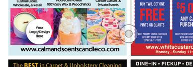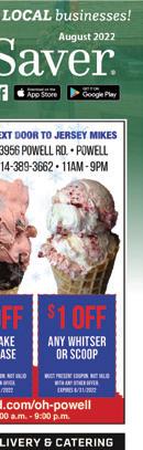 For Weekly Specials 2620 Sawmill Place Blvd. Columbus 43235 | (614) 659-7700 $50 OFF Birthday Party Package Not valid with other o ers Expires 9/30/2022 BOGO Buy Any Action Pass, Get One FREE With coupon. Not valid with other o ers. Not valid on holidays and school holidays. Limited to ONE per household. One time use. Valid for one person only, please. Expires 9/30/2022 More Fun Than YourCanFamilyHandle! BACK 2 SCHOOL GOT YOU DOWN? BUY TWO, GET ONE FREE PINTS OR QUARTS Must Present coupon. Not valid with any other offer. Expires 9/30/2022 $5 OFF A n Y CAKE PURCHASE Must Present coupon. Not valid with any other offer. Expires 9/30/2022 $1 OFF ANY WHITSER OR SCOOP Must Present coupon. Not valid with any other offer. Expires 9/30/2022 whitscustard.com/oh-powell Hours: Monday - Sunday 11:00 a.m. - 9:00 p.m. 614-932-9100 • DINE IN • PATIO • CARRY OUT • 9762 SAWMILL PKWY • POWELL • DonTequilaGrill.com Happy Hour 25% OFF JUMBO HOUSE MARGARITA ONLY $8.99 1/2 PRICE BEER ALL BOTTLE BEER DOMESTIC & IMPORT 24 OZ. DRAFT 25% OFF JUMBO HOUSE MARGARITA ONLY $8.99 1/2 PRICE BEER ALL BOTTLE BEER DOMESTIC & IMPORT 24 OZ. DRAFT EVERY DAY 3-6pm $4 OFF Any purchase of $20 or More (Tax Not Included) $6 OFF Any purchase of $30 or More (Tax Not Included) $10 OFF Any purchase of $50 or More (Tax Not Included) FREE Queso With purchase of lunch or dinner entreé Dine In Only. Valid at locations listed. Cannot combine with any other offers or specials. Expires 9/30/2022 Dine In Only. Valid at locations listed. Cannot combine with any other offers or specials. Expires 9/30/2022 Dine In Only. Valid at locations listed. Cannot combine with any other offers or specials. Expires 9/30/2022 Dine In Only. Valid at locations listed. Cannot combine with any other offers or specials. Expires 9/30/2022 Visit us online at townmoneysaver.com or download our app for more savings!