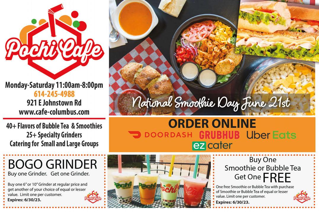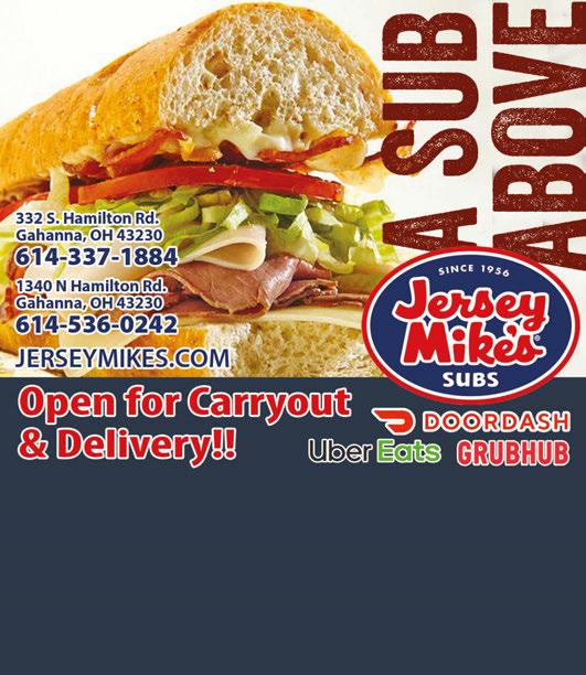 GAHANNA Published By Town Money Saver, Inc. Corporate Office • PO Box 356 • Lucas, OH 44843 © 2018 TMS Franchising, Inc. All rights reserved. For advertising information, call Sharon 614-679-8160 NEXT ISSUE IN HOMES: June 29, 2023 ADVERTISING DEADLINE: June 14, 2023 PRSRT STD ECRWSS U.S. POSTAGE PAID Town Money Saver, Inc. townmoneysaver.com VALID AT 332 S. Hamilton Road & 1340 N. Hamilton Road • GAHANNA LOCATIONS ONLY VALID AT 332 S. Hamilton Road & 1340 N. Hamilton Road • GAHANNA LOCATIONS ONLY VALID AT 332 S. Hamilton Road & 1340 N. Hamilton Road • GAHANNA LOCATIONS ONLY VALID AT 332 S. Hamilton Road & 1340 N. Hamilton Road • GAHANNA LOCATIONS ONLY $1.00 OFF! ANY REGULAR SUB $2.00 OFF! ANY GIANT SUB FREE CHIP AND REGULAR FOUNTAIN DRINK WITH ANY SIZE SUB One coupon per person per visit per day. Not to be combined with other offers. No cash value. Redeemable in person only. Hurry! Offer expires 6/29/23. Code: 0204 One coupon per person per visit per day. Not to be combined with other offers. No cash value. Redeemable in person only. Hurry! Offer expires 6/29/23. Code: 0205 One coupon per person per visit per day. Not to be combined with other offers. No cash value. Redeemable in person only. Hurry! Offer expires 6/29/23. Code: 0225 One coupon per person per visit per day. Not to be combined with other offers. No cash value. Redeemable in person only. Hurry! Offer expires 6/29/23. Code: 0201 10% OFF! ANY CATERING ORDER Party types: Classes: Monthly Special Events: Birthday • Bridal • Date Night • Ladies Night Fluid Art Classes • Resin Beach Classes Glass Painting Classes • Resin Art Tumbler Classes Silk Scarf Marbling • Jewelry Making Resin Classes • Alcohol Ink Classes Spin Art Classes • Wood Burning Classes 5544 N Hamilton Rd., Gahanna, OH 43230 (812) 221-2115 www.hawaii uidart.com Not valid with any other offer. Expires 6/29/23. 10% OFF 10% OFF A purchase of $60 or more.