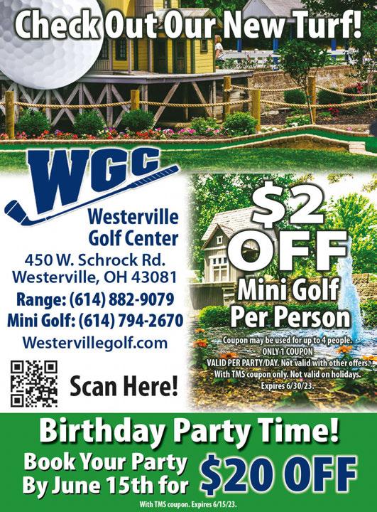 $5 OFF Any Watch Battery Any Jewelry Repair Must present coupon. No expiration date. G Must present coupon. No expiration date. G Westerville Jewelers Westerville Jewelers 10% OFF With this coupon. Not valid with other offers or prior services. Offer expires 7/31/2023 25% OFF any interior painting project With this coupon. Not valid with other offers or prior services. Offer expires 7/31/2023 With this coupon. Not valid with other offers or prior services. Offer expires 7/31/2023 Interior & Exterior Painting Pressure Washing Cabinet Re nishing Gutter Cleaning Epoxy Floor Coatings Deck & Fence Staining Trim Repair Door Re nishing Painting & Pressure Washing Columbus Since 2004 CJ’S PAINTING & CUSTOM INTERIORS 614-778-1090 @CJsPaintingAndCustomInteriors email us: cjspaintingcolumbus@gmail.com 25% OFF any exterior painting project POWER WASH SAVINGS $149 Single Story Home $249 Two Story Home www.cjspaintingcolumbus.com FREE ESTIMATES Shop locally. Save locally. HELP WANTED Outside Advertising Sales Representatives Town Money Saver is looking for full time or part time outside sales representatives. Looking for an outgoing self starter who can build current relationships and prospect new customers. Sales experience is helpful but not required. Will train the right person. If interested submit your resume to sharonziegler@townmoneysaver.com or call 614-679-8160 for more details.