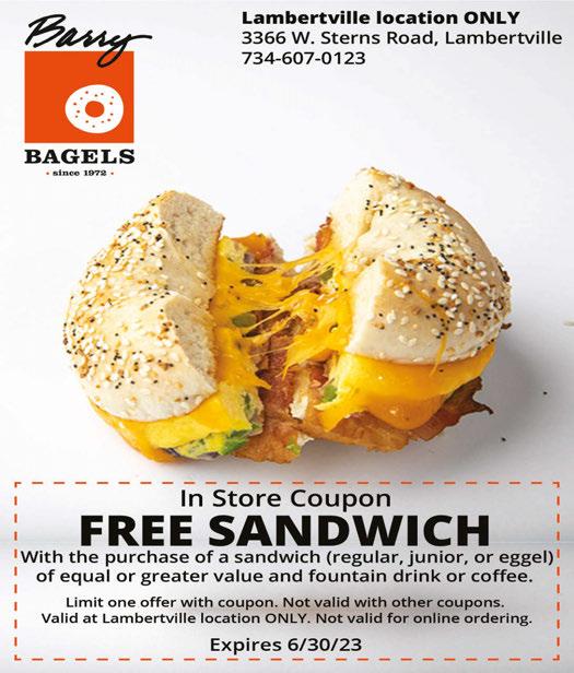 734-847-8886 www.aroundyourhouse4u.com O JOB TOO SMALL... WE DOITALL! All Home Services Around Your House LLC FREE ESTIMATES Locally Owned & Operated Licensed & Insured 100 any job over $700 off 50 off any job over $350 25 off any job over $175 Coupon for first time customers only. Not valid with any other offers. Expires 6/30/23 Does your kitchen or bathroom need an update? LUNCH • DINNER • LATE NIGHT MUSIC LIVE 8-11p Fri & &Sat HOURS: Fri & Sat 11am -midnight (food until 11pm) Sun-Thurs 11am- 10pm (food until 9pm) Locally Owned & Operated 3536 W. Sterns Rd, Lambertville 734.854.4444 quimbysfoodandspirits.com ANY LUNCH 11AM-4PM Valid at Quimby’s & Forest View Excludes alcohol, Dine In only. Not valid with other offers. With coupon. Expires 6/30/23 $2OFF LUNCH SPECIAL OFF purchase of $30 or more $5 MON-THURS Valid at Quimby’s & Forest View Excludes alcohol, Dine In only. Not valid with other offers. With coupon. Expires 6/30/23