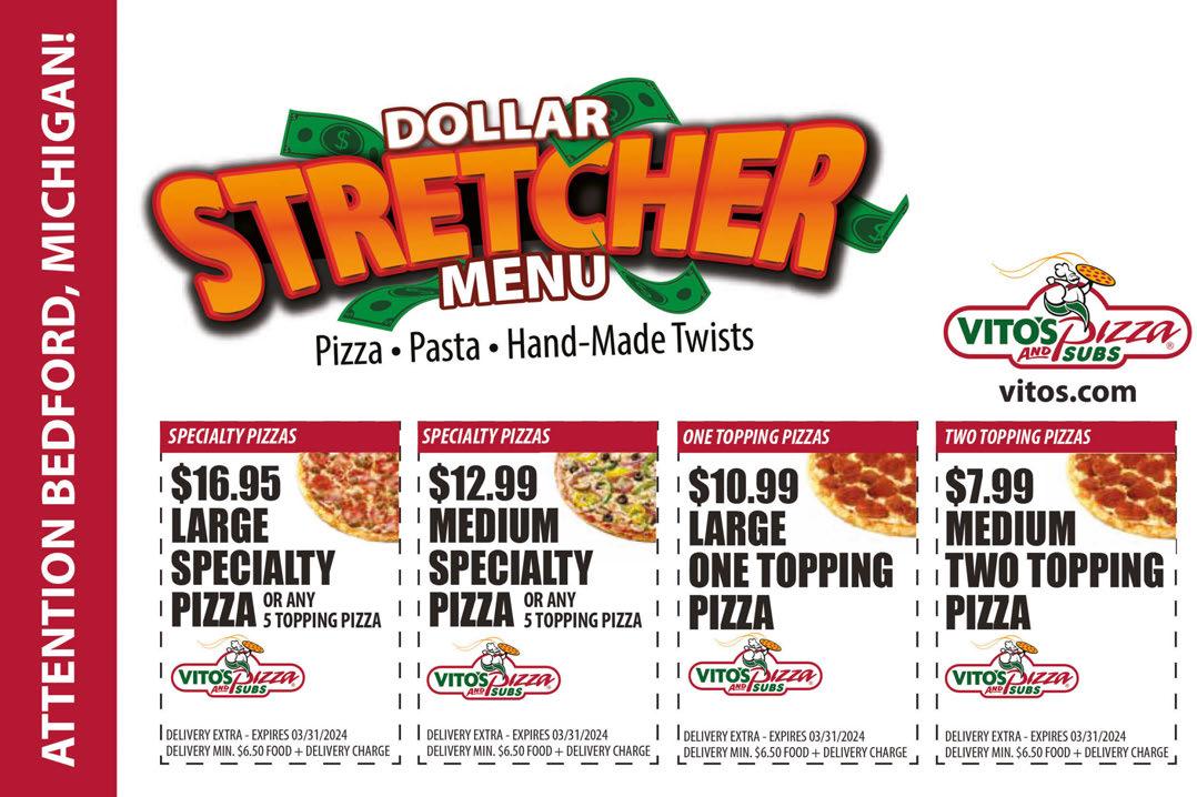 BEDFORD March 2024 Shop locally. Save locally. Scan our QR code to fi nd your perfect invitation! To advertise, call 419.467.5593 5demayotoledo.com AIRPORT/WEST 7011 Airport Hwy. 41-866-8229 ROSSFORD 1213 Schreier Rd. 419-666-3288 ALEXIS/NORTH 304 E. Alexis 419-478-7530 NEW LOCATION 2825 Glendale 419-796-4718 Any purchase of $40 or more Excludes Alcohol. With TMS coupon. Dine in only. One coupon per person. Not valid with any other offers. Exp. 3/31/24 $5 off MEXICAN GRILL & BAR Serving only QUALITY, FRESH ingredients at Affordable Prices! $650 ANY LUNCH Up to two people per coupon. Dine in only. With TMS coupon. Cannot be combined with other offers. Exp. 3/31/24 Lunch Menu Only. Lunch Special 16th Year Anniversary Celebration Dine in only. Valid on Wednesday, Mar. 13 only ALL FOOD 1/2 off WED Mar 13 Exp. 3/31/19 Sales - Service - Repairs HEATING AND COOLING $69 Furnace Clean & Check $20 Value (Reg. $89) 734-241-8800 1118 Union St., Monroe We do DUCT CLEANING Residential & Commercial ALL MAKES & MODELS Your Home Comfort Specialists! Family Owned Prompt & Professional Service Must be presented at time of service call. Cannot be combined with any other offers. With TMS coupon only. Expires 3/31/24 4- 8 oz. Marinated Sirloin Steaks 4- 8 oz. NY Strip Steaks 4- 8 oz. BNLS Chicken Breast Filets 1- 2.25 lb. Pork Shoulder Roast 1- 2.25 lb. Chuck Roast 8- 4 oz. Boneless Pork Chops 1- 1/2 lb. Whole Cut Up Chicken 4- 1 lb. Gr. Chuck 8- 4 oz. Gr. Chuck Patties 2- 1 lb. Sliced Bacon 1- 4 lb. Rack Baby Back Ribs 1- 1 lb. Breakfast Sausage Family of 4 $225 Howard’s Meats. With TMS coupon. Not valid with other offers. Expires 3/31/24 2- 2 lb. English Roast 2- 2 lb. Chuck Roast 2- 1 lb. Beef Stew 1- 2 lb. Boneless Beef Short Ribs 4- 1 lb. Ground Chuck Patties (1/4 lb) 8- 1 lb. Ground Chuck 2- 1 1/2 lb Boneless Round Steak 6- 6 oz. Cube Steaks 2- 2 lb. Rump Roast 1- 2 lb. Howard’s Meat Loaf 4- 8 oz. New York Strips 4- 8 oz. Marinated Sirloin Filets 4- 10 oz. Ribeyes Quarter Beef Package Howard’s Meats. With TMS coupon. Not valid with other offers. Expires 3/31/24 $399 THANKS for Shopping Local! Family of 2 $89 Howard’s Meats. With TMS coupon. Not valid with other offers. Expires 3/31/24 2- 8 oz. Marinated Sirloin Filets 2- 8 oz. NY Strip Steaks 4- 4 oz. Boneless Pork Chops 2- 7 oz. B/W Italian Chicken 2- 8 oz. Bnls Chicken Breasts 1- 1 lb. Ground Chuck 1- 1 lb. Breakfast Sausage 1- 2 lb. Chuck Roast 1- 1 lb. Sliced Bacon Howard’s Meats. With TMS coupon. Not valid with other offers. Expires 3/31/24. HOWARD’S MEATS Where Quality Matters Since 1985 734854-MEAT(6328) 8078 Secor at Summerfield Bakery & Deli The Place With The Homemade Taste www.howards-meats.com Join our Team! Michigan & Ohio Food Stamp/EBT Cards Welcome! M-F 9am-6:30pm Sat 9am-6pm Sun 10am-4pm Howard’s Meats. With TMS coupon. Not valid with other offers. Expires 3/31/24 $135 2 - 4 oz. Deluxe Crab Cakes 2 - 8 oz. Boneless Ham Steaks 2 - 8 oz. Tortilla Crusted Tilapia 2 - 8 oz. NY Strips 2 - 8 oz. Chicken Breast Fillets 1 - 2 lb. Howard’s Meatloaf Mix 2 - 8 oz. Smoked Pork Chops 2 - 6 oz. Polish Kielbasa 1 - 1 lb. Sliced Corned Beef 1 - 1 lb. Lake Perch 2 - 12 oz. Pork Steaks 1 - 1 lb. Ground Chuck St. Patrick’s Day - Lenten Pkg. Any Regular Purchase Of $30 Or More OFF $3 Place Your Easter Orders Now! • Dearborn Spiral Sliced Premium Ham • Fresh Polish Kielbasa • Dearborn Semi & Boneless Hams • Dearborn Holiday Kielbasa • Choice Angus Prime Rib • Homemade Polish Coffee Cakes • Muscovy Ducks • Specialty Breads and Rolls • Fresh Baked Pies Place Your EASTER Order Early! Stop & See Us At the BBA Trade Fair BHS March 9th