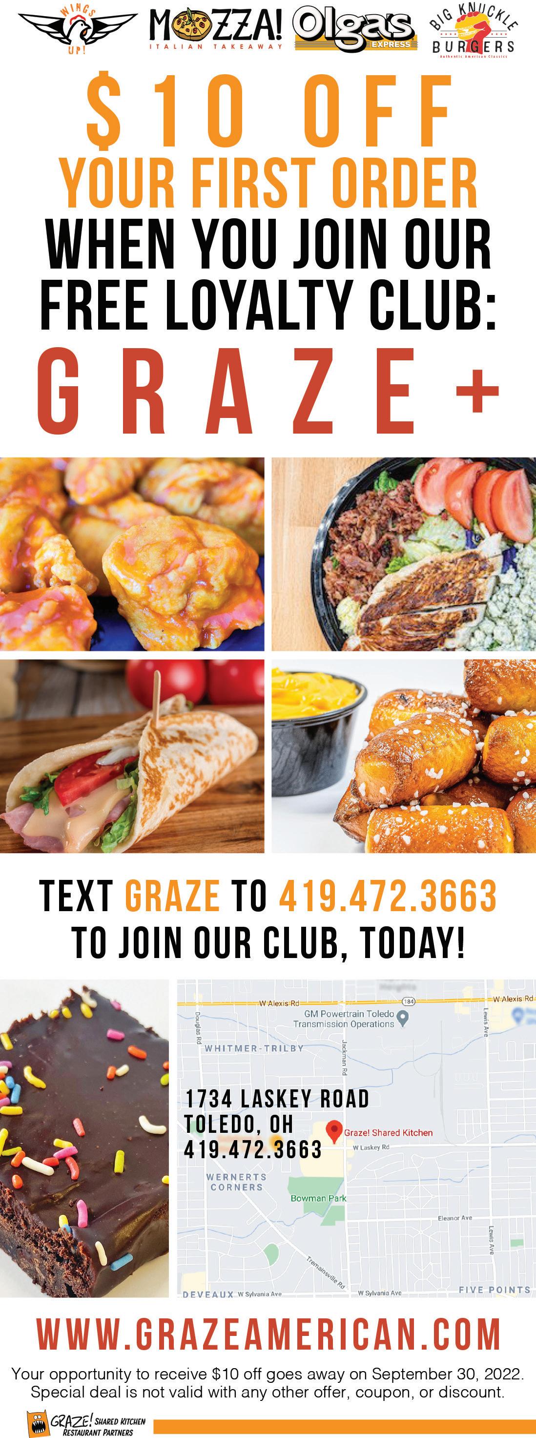 Support LOCAL businesses! Shop locally. Shop safely. BEDFORD SEPTEMBER 2022 To advertise, call 419.467.5593 C omplete Automotive Service Wrecker Service & Towing With TMS coupon only. Expires 9/30/22 734-269-2790 12198 L ewis Ave., Temperance 48182 Mon, Tues, Wed & Fri 8am - 5pm Thursday 8am - 6pm With TMS coupon only. Expires 9/30/22 Oil Change $20 OFF A ny Brake Service $3 OFF $19995 For complete Flush & Fill With TMS coupon only. Expires 9/30/22 P rotect Your Transmission REG. $ With TMS coupon only. Expires 9/30/22 $10 OFF A lignment Service SERVICE IT TODAY AIRPORT/WEST 7011 Airport Hwy. 41-866-8229 ROSSFORD 1213 Schreier Rd. 419-666-3288 ALEXIS/NORTH 304 E. Alexis 419-478-7530 PatioOpen! MEXICAN GRILL & BAR Any purchase of $40 or more Excludes Alcohol. With TMS coupon. Dine in only. One coupon per person. Not valid with any other offers. Exp. 9/30/22 $5 off Friday, Sept. 16 Join us for our Celebration Specials! Mexican Independence Day LUNCH SPECIAL $650 Lunch Menu Only. With TMS coupon. Dine in only. One coupon per person. Not valid with any other offers. Exp. 9/30/22 Any Lunch HOWARD’S MEATS 854-MEAT(6328) Michigan & Ohio Food Stamp/ EBT Cards Welcome! Any Regular Purchase Of $30 Or More $3 OFF With TMS coupon. Not valid with other offers. Expires 9/30/22 Howard’s Meats. The Place With The Homemade Taste www.howards-meats.com WE ALSO HAVE: 100% Grass Fed Beef, Organic or Hormone Free Beef & Chicken Products Your Healthy OMEGA-3 Choice! Howard’s Meats. With TMS coupon. Not valid with other offers. Expires $125 Back-to-School Package 1- 1 lb. Ground Turkey 1- 1 lb. Ground Chicken 4- 1/4 lb. Turkey Burgers 4- 1/4 lb. Chicken Burgers 2- 6 oz. B/W Turkey Medallions 2- 6 oz. B/W Chicken Medallions 2- 8 oz. Boneless Chicken Breast Filets 2- 6 oz. Chicken Feta Spinach Brats 2- 6 oz. Chicken Sweet Italian Brats 4- 3 oz. Chicken Sausage Patties 1- 12 oz. Pkg. Sliced Turkey Bacon Chicken & Turkey Package Howard’s Meats. With TMS coupon. Not valid with other offers. Expires $79 8078 Secor Rd. @ Summerfield HOURS: M-F 9am-6:30pm Sat 9am-6pm • Sun 10am-4pm 4- 8 oz. Sirloin Fillets 4- 8 oz. NY Strip Steaks 4- 8 oz. Boneless Chicken Breasts 1- 2.25 lb. Pork Shoulder Roast 1- 2.25 lb. Chuck Roast 8- 4 oz. Boneless Pork Chops 1- 3 lb. Whole Cut Up Chicken 2- 1 lb. Gr. Chuck 8- 4 oz. Gr. Chuck Patties 2- 1 lb. Sliced Bacon 1- 4 lb. Rack Baby Back Ribs 2- 1 lb. Breakfast Sausage Family of 4 $209 Howard’s Meats. With TMS coupon. Not valid with other offers. Expires 2- 2 lb. English Roast 2- 2 lb. Chuck Roast 2- 1 lb. Beef Stew 1- 2 lb. Boneless Beef Short Ribs 5- 1 lb. Ground Chuck Patties 10- 1 lb. Ground Chuck 2- 1 1/2 lb Boneless Round Steak 6- 6 oz. Cube Steaks 2- 2 lb. Rump Roast 2- 1 1/2 lb. Sirloin Steak 4- 8 oz. New York Strips 4- 8 oz. Sirloin Fillets