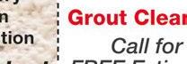 We Steam Clean Ceramic Tile, Grout & Concrete Reviews 5.0 FAST DRYING Professional State-of-the-Art Truck Mounted Steam Cleaning NOT HOT WATER! HOUR Flood & Mold Restoration Certified Technicians A+ Plus tax. Minimum charge $125. Cannot be used with other discounts. Coupon expires 5/31/23 Carpet Cleaning Min. charge $125. Plus tax. Residential use only. L-shaped areas or areas exceeding 250 sq. ft. are considered 2 areas. Cannot be used with other discounts. Coupon expires 5/31/23 3 areas $145 4 areas $155 5 areas $165 6 areas $175 Furniture Cleaning Couch $80 Loveseat $70 Chair $55 Serving NW Ohio & SE Michigan 419-729-9966 ToledoCarpetAndMold.com • ToledoFloodedBasement.com Deodorizer for all areas cleaned! The Grycza Family since 1988 free 5.9% OR