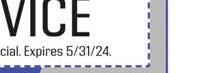 * One coupon per customer, can’t be combined with other offers, some restrictions apply, expires 05/31/24