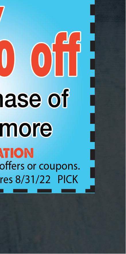 Must mention coupon when scheduling. Not valid with other o ers or discounts. Some restrictions apply. Expires 8/30/22.