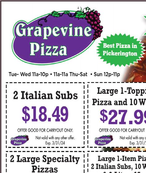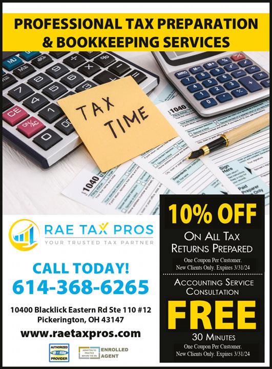 PICKERINGTON Published By Town Money Saver, Inc. Corporate Office • PO Box 356 • Lucas, OH 44843 © 2024 TMS Franchising, Inc. All rights reserved. For advertising information, call 614-900-4256 NEXT ISSUE IN HOMES: March 28, 2024 ADVERTISING DEADLINE: March 15, 2024 POSTAL CUSTOMER PRSRT STD ECRWSS U.S. POSTAGE PAID Town Money Saver, Inc. townmoneysaver.com Choosing Health Insurance is Hard. I Can Help! Philip T. King HealthMarkets Insurance Agency Licensed Insurance Agent PKing@HealthMarkets.com Call for a FREE Quote Today! 614-398-9556 HealthMarkets Insurance Agency Inc. is licensed as an insurance agency in all 50 states & the District of Columbia. Not all agents are licensed to sell all products. Service & product availability may vary by state. Sales agents may be compensated based on enrollment. No obligation to enroll 47749-HM-0721 Health | Medicare | Small Group | Life | Supplemental