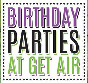 CLUB AIR FRI & SAT 8PM – 10PM STARTING AT $225 $50 OFF YOUR NEXT PARTY WHEN YOU BOOK A PARTY WITH 10 OR MORE JUMPERS With coupon. Not valid with other o ers. Not valid on holidays and school holidays. Limited to ONE per household. One time use. Valid for one party only, please. Expires 3/31/2024 TRAMPOLINES FOAM PITS NINJA COURSE DODGE BALL TODDLER AREA PARTY ROOMS $5 OFF 2 HOUR JUMP PASS (LIMIT 4 GUESTS PER COUPON) With coupon. Not valid with other o ers. Not valid on holidays and school holidays. Limited to ONE per household. One time use. Valid for one person only, please. Expires 3/31/2024 FREE HOUR BUY 1 HOUR, GET 2ND HOUR FREE (SAME PERSON/SAME DAY) With coupon. Not valid with other o ers. Not valid on holidays and school holidays. Limited to ONE per household. One time use. Valid for one person only, please. Expires 3/31/2024 FREE HOUR BUY 1 HOUR, GET 2ND HOUR FREE (SAME PERSON/SAME DAY) With coupon. Not valid with other o ers. Not valid on holidays and school holidays. Limited to ONE per household. One time use. Valid for one person only, please. Expires 3/31/2024 GET OUT. GET ACTIVE. GET AIR. 1075 Hill Rd N • Pickerington • 614-490-1286 Get coupons/deals online at... GetAirPickerington.com