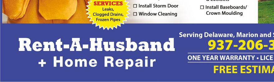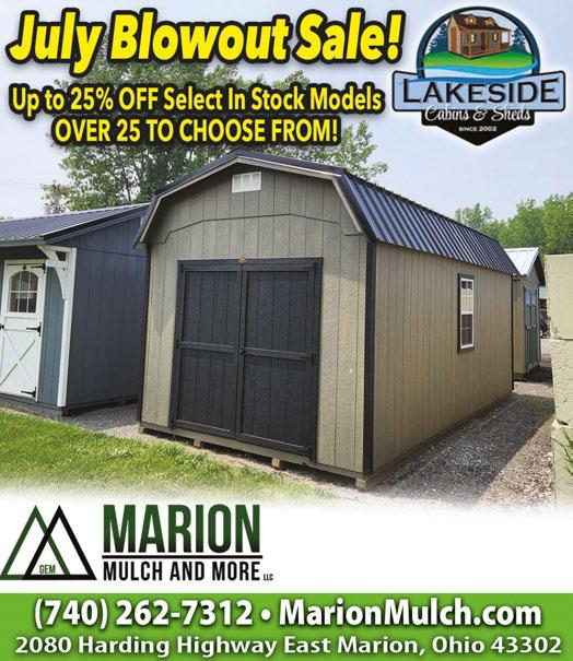 For advertising information, call 740-751-3311 NEXT ISSUE IN HOMES: August 17, 2023 ADVERTISING DEADLINE: August 2, 2023 Visit Our Displayed Models at Marion Mulch & More or Custom Build Your Own from the Comfort of your Own Home by Going Online and Using Our 3-D Builder at www.mylakesidecabins.com $100 Down & Up to 60 Months Rent to Own NO CREDIT CHECK • TREE & SHRUB REMOVAL • TREE TRIMMING • MOWING STUMP GRINDING 10% OFF (MAX DISCOUNT VALUE OF $100) VALID WITH COUPON. EXPIRES 8/15/23