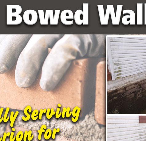 Expires 8/15/23 671 E. Center St. • MARION, OH 43302 740-914-4014 www.BohemianBesoms.com Tuesday through Friday: Noon to 7pm Saturday 10am to 7pm • We are a Locally Owned Family Business that does All Masonry Work • Specializing in Basement and Foundation Repair FREE ESTIMATES NOW BOOKING SPRING & SUMMER INSURED & BONDED SENIOR CITIZENS & FIRST RESPONDERS DISCOUNT! BEFORE AFTER 20% OFF WATERPROOFING With coupon. Expires 8/15/23
