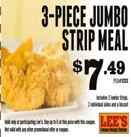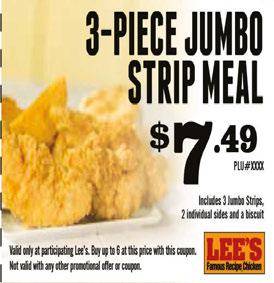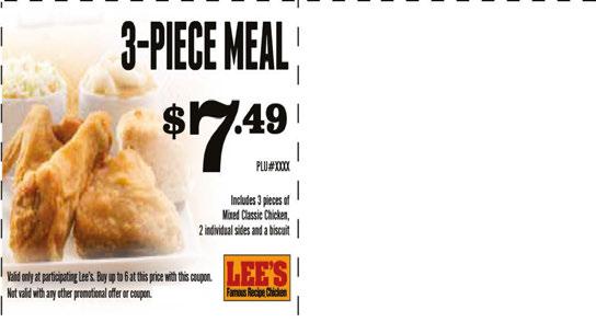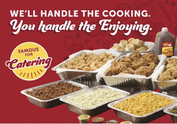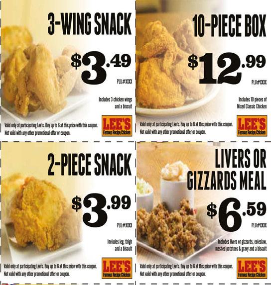 Expires 4/11/24. Expires 4/11/24. Expires 4/11/24. Expires 4/11/24. Expires 4/11/24. Valid only at participating Lee’s. Buy up to 4 at this price with this coupon. Not valid with any other promotional offer of coupon. Expires 4/11/24. LOADED BROWNIE $2.00 Valid only at participating Lee’s. Buy up to 6 at this price with this coupon. Not valid with any other promotional offer of coupon. Expires 4/11/24. 4-PIECE MIXED Includes a biscuit, mashed potatoes & gravy and coleslaw $9.99 LOW COST, HIGH QUALITY CATERING... CALL FOR A QUOTE TODAY! **special offers are subject to change or cancellation at any time. $6.99 571 E. Center St. • Marion, OH • 740-387-3277 + tax $26.99 + tax