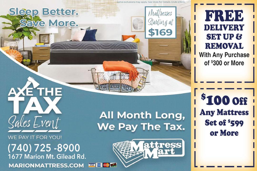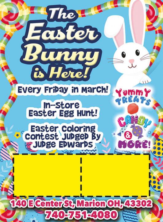 541 E. CENTER STREET tire plug only $10 SPECIAL DISCOUNTS FOR ALL FIRST RESPONDERS (Police, Fire & EMS) VETERANS / ACTIVE MILITARY $20 OFF Set of 4 NEW Tires Not valid with any other offer. Expires 4/11/24. Not valid with any other offer. Expires 4/11/24. $5 OFF ANY TIRE + FREE MOUNT & BALANCE 4/11/24 20% OFF ALL CLOTHING 5 $ 25 6th Elmo will be here Saturday, April 6th CHECK FACEBOOK FOR PARTY DETAILS Open Monday - Saturday 10am-6pm • Closed Sundays 158 McMahan Blvd MARION 43302 $2.00 OFF Your Order Over $10 With coupon. Not valid with any other offer. Expires 4/11/24 With coupon. Not valid with any other offer. Expires 4/11/24 With coupon. Not valid with any other offer. Expires 4/11/24 $29.99 Savings of $10.97! Family Meal Deal 4 small subs and 2 medium fresh cut fries AVAILABLE ALL DAY 20% OFF Your Total Bill