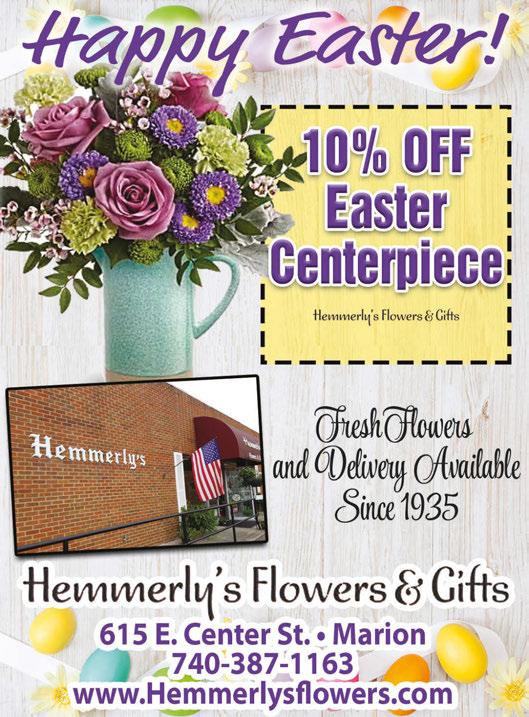 Mon-Fri 9am-5pm • Sat 9am-12pm Delivery Available Online Only sansottasitalian.com 740-751-6596 1292 Delaware Ave. In Servex Center Catering for Any Size Group! $5 OFF $2 OFF Any Easter Basket over $25 Any Purchase over $10 With coupon. Expires 4-11-24 With coupon. Expires 4-11-24 When You Need a Truck, Call Chuck 1 Ton Chuck 740-262-6991 Hauling Starting at $30/Ton* *In Town Only