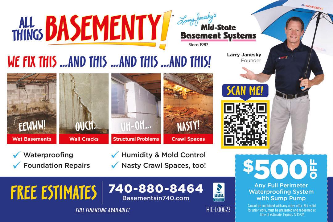 NOW AVAILABLE 48oz Cartons of Homemade Ice Cream • Pints of Gelato Ice Cream Sandwiches & Fudge Any Pasta Bowl or Salad Must present coupon. Not valid with other o ers. Expires 4/11/24 $1.00 OFF Prices are subject to change at any time facebook.com/SansottasItalian Sansottasfreshitalian@yahoo.com PIZZA AVAILABLE EVERY DAY! GRAB & GO FREEZABLE MEALS Grilled Cheese & Tomato Soup Combo $8.99 6 WINGS $5.99 Delivery Only Available When You Order Online at sansottasitalian.com 20% OFF WATERPROOFING With coupon. Expires 4/11/24 • We are a Locally Owned Family Business that does All Masonry Work • Specializing in Basement and Foundation Repair FREE ESTIMATES NOW BOOKING SPRING INSURED & BONDED SENIOR CITIZENS & FIRST RESPONDERS DISCOUNT! BEFORE AFTER Must present. Not valid with any other o er or discount. Limit 1 coupon per visit. Expires 4/11/24
