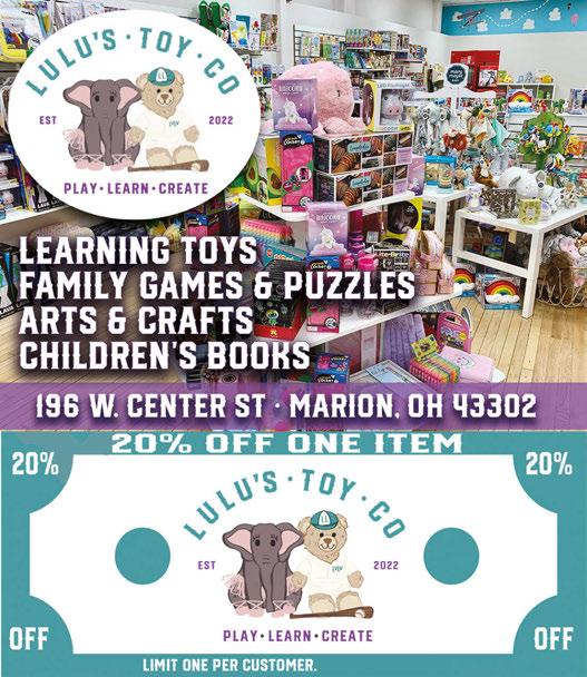 MARION May 2023 Shop locally. Save locally. Support LOCAL businesses! EQUAL EDUCATION OPPORTUNITY It is the policy of Tri-Rivers Career Center that educational programs and activities are provided without regard to race, color, national origin, gender, disability, or age. Adult Education Patient Care Technician Practical Nursing LPN to RN Saving Lives, Becoming Heroes CAREER CENTER Program details at tririvers.com 740-389-4682 Apply Today! expires 6/15/23 • TOBACCO • VAPE • CBD & KRATOM • SNACKS • AND MORE! SOLD HERE ICE COLD BEER, WINE & BAR SERVICE AVAILABLE! FREE Lighter with any 3pk cigarette purchase 6AM TO 3AM EVERYDAY BEER SALES & BAR SERVICE UNTIL 2:30AM
