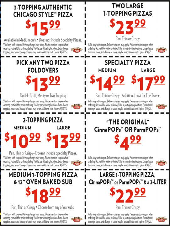 734 E. CENTER ST, MARION 740-387-6565 DINE-IN, CARRYOUT OR DELIVERY with the purchase of 2 large non-specialty pizzas!