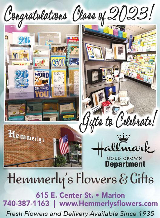 Mon-Fri 9am-5pm • Sat 9am-12pm 740-262-7312 | 2080 Harding Highway East (St. Rt. 309) www.MarionMulch.com MOTHER’S DAY SALE 10% OFF YOUR TOTAL PURCHASE MAY 12TH, 13TH & 14TH ONLY FLOWERS! • Hanging Baskets • Planters • Succulents • Flats BAG Mulch Sale BLACK OR BROWN VELVET 2 cu.ft. bag $4.99 BLACK NATURAL 2 cu.ft. bag $3.99