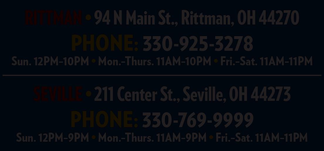 Expires 11/10/22 671 E. Center St. MARION, OH 43302 www.BohemianBesoms.com 740-914-4014 $5 Of f Any Purchase of $25 or More Must present coupon. Valid on clothing items only. Do not combine. Not valid with other offers or discounts Expires 11/10/22 Open Monday - Saturday 11am-6pm • Closed Sundays WE HAVE COSTUMES! MARION PHONE: 740-375-4300 • 740-375-4301 1322 Mt. Vernon Ave. • Marion, OH 43302 Sunday-Thursday 11am-10pm Friday-Saturday 11am-11pm WE DELIVER! NO CONTACT DELIVERY AVAILABLE UPON REQUEST CELEBRATING OUR 2ND YEAR AT 1322 MT. VERNON AVE. WE’RE HIRING DRIVERS!