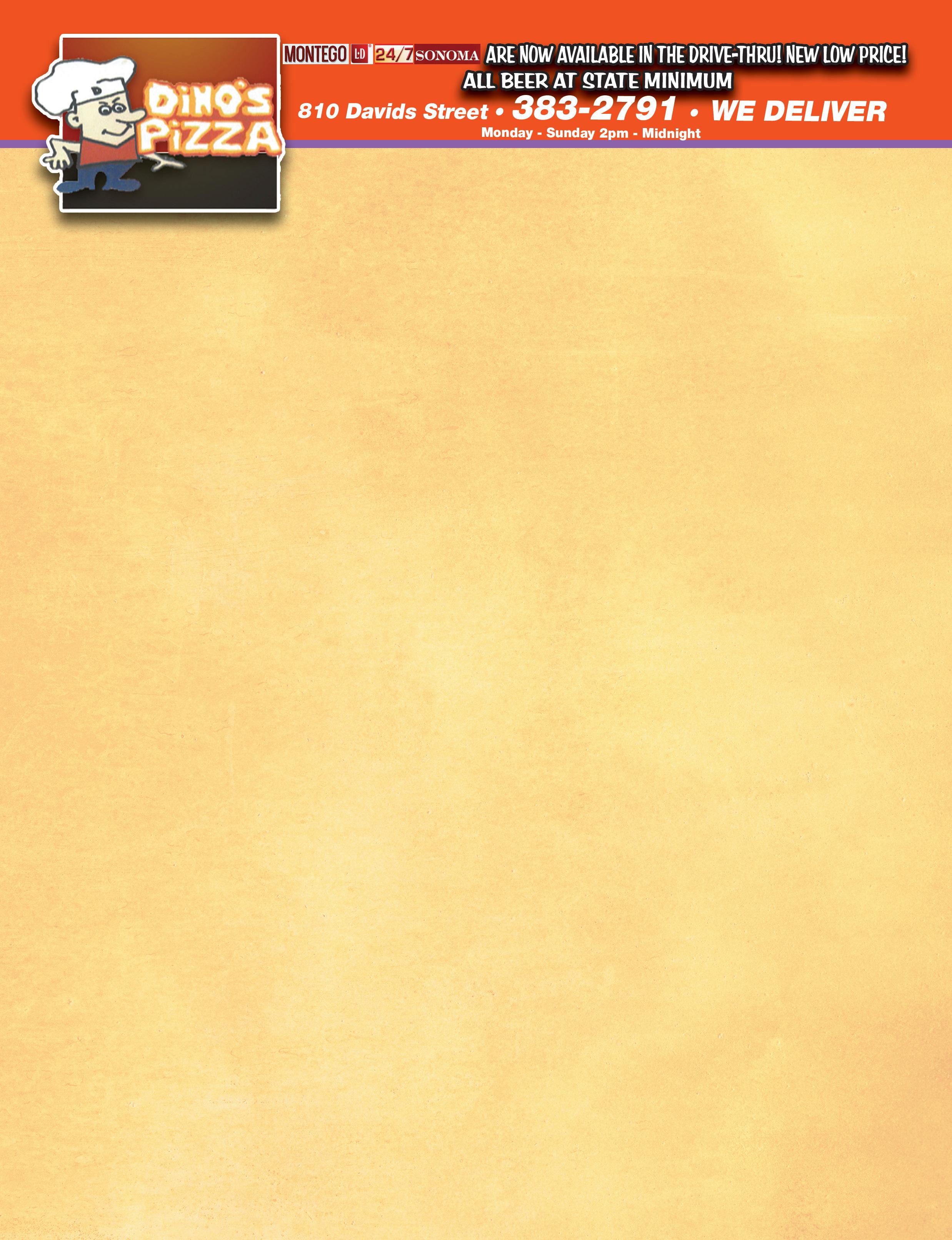 In Town Delivery $5 • Free In Town Delivery on Food Orders Over $35. Delivery Available 4pm-12am Pizza Party Pack Giant 18” Pepperoni Pizza, 6 Chicken Wings (Your choice: hot, bbq or original), 6 Breadsticks (Choice of cheese cup or marinara sauce), and Cole Slaw Only $26.99 60 Pc. Snack Bucket Chicken Fingers, Mushrooms, Onion Rings, Corn Dogs,Pepperoni Sticks, Mozzarella Sticks, Assorted Veggies Only $26.99 Two 16” Super Subs Only $14.99 One for $7.99 DRIVE THRU SPECIAL Sloppy Joe, Mushroom Joe, or Shredded Chicken Sandwich, Small Bag of Chips, and a Can of Pop Only $2.99 CHAR BURGER SPECIAL! 2 oz. $2.25 • 4 oz. $3.25 8 oz. $5.25 30 Pc. $15.99 Must Present Coupon. Expires 11/10/22 Must Present Coupon. Expires 11/10/22 Must Present Coupon. Expires 11/10/22 Must Present Coupon. Expires 11/10/22 Must Present Coupon. Expires 11/10/22 We accept in store only. No checks on delivery. Prices are subject to change without notice. (10) Chars or Shredded Chicken or Mushroom Joe or Sloppy Joe with Fries Only $21.99 or (5) with Fries Only $12.99 Must Present Coupon. Expires 11/10/22 One Item Individual Pizza Only $3.99 With Any Food Order Over $20 Additional Topping + 50¢ each Must Present Coupon. Expires 11/10/22 WINGS! BBQ, Buffalo, Garlic Parm or Naked 6/$6.99 - 12/$10.99 Must Present Coupon. Expires 11/10/22 SPAGHETTI DINNER $5.99 Includes Side Salad & Garlic Bread Must Present Coupon. Expires 11/10/22 2 Piece Fish Dinner, Fries and Coleslaw Only $5.99 Must Present Coupon. Expires 11/10/22