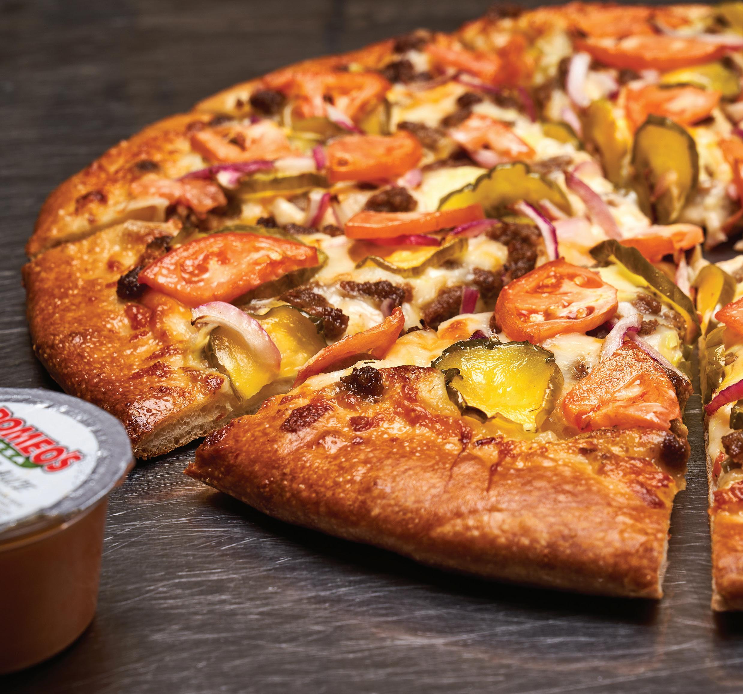 Online Only 10AM-4PM | romeospizza.com Premium toppings and crust styles extra. Cannot be combined with any other offers. Use code LUNCH to redeem. Expires 12/31/22. LARGE ONE-TOPPING PIZZA AND CHEESE BREADSTICKS $15.99 FAMILY SPECIAL : TWO LARGE ONE-TOPPING PIZZAS $23 SMALL ONE-TOPPING PIZZA, SUB, CALZONE OR STROMBOLI $7.99 Online Only | romeospizza.com Online Only | romeospizza.com Premium toppings and crust styles extra. Cannot be combined with any other offers. Use code COMBO1 to redeem. Expires 12/31/22. Premium toppings and crust styles extra. Cannot be combined with any other offers. Use code 2LG to redeem. Expires 12/31/22. Order online at romeospizza.com Now Open in Galion at 216 Portland Way Nor th! (419) 971–0777 TRY OUR NEW CHEESEBURGER SPECIALTY PIZZA FOR JUST $14.99 Use promo code: BURGER TASTY BURGER SAUCE • CRUMBLED GROUND BEEF • THIN-SLICED DILL PICKLES FRESH CUT RED ONIONS & TOMATOES • MOZZARELLA, PROVOLONE & CHEDDAR CHEESES