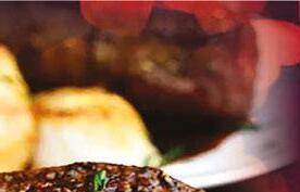 Mash 4 Tbsp butter with the parsley, chives, lemon zest, lemon juice and mustard in a small bowl. Scoop the butter mixture onto a sheet of plastic wrap. Wrap up and form into a 3” log. Refrigerate until rm, about 30 min. Preheat the oven to 450˚. Generously season the steaks on both sides with salt and pepper. Wrap each steak around the edge with a slice of bacon and secure with a toothpick.
