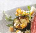 Steam zucchini, slice into ¼” pieces. Reserve a few slices for garnish. Thinly slice green onion. Mix zucchini & green onions together with the rice and dressing.