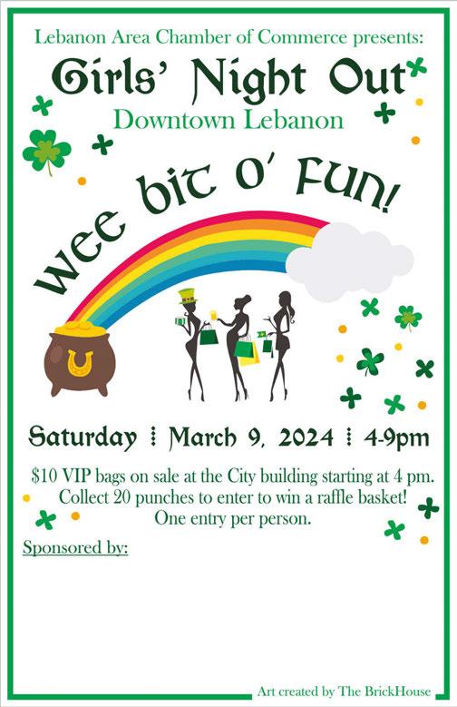 SUPPORT CHAMBER LEBANON MEMBERS LEBANONCHAMBER.ORG AnniversarySpecials! Stop in for our Food & Drink Specials March 17 We offer: And CARRY OUT 513-228-0200 • 513-228-0320 916 Columbus Ave. Lebanon, OH Acapulco MEXICAN RESTAURANT Buy one lunch, get $3.00 OFF a second lunch.* *First lunch at regular price. Excludes alcohol. VALID SUN-THU, WORKS WITH TAKE OUT ORDERS. One coupon per check please. Not valid with any other offer or a la carte items. Expires 3/31/2023. Buy one dinner, get $5.00 OFF a second dinner.* *First dinner at regular price. Excludes alcohol. VALID SUN-THU, WORKS WITH TAKE OUT ORDERS. One coupon per check please. Not valid with any other offer or a la carte items. Expires 3/31/2023. Thanks for 16 years of patronage! Please join your fellow Chamber Members at any of these events! Registration links for all of these events can be found on our website here: lebanonchamber.org/events SAT, MAR 2 AT 11 AM AND 4: Saturdays at the Beedle Cabin, Lebanon WED, MAR 6 AT 11:30 AM: March Lunch Local at Tropical Smoothie SAT, MAR 9 AT 8:30 AM: Let’s Lebanon! A Community A air Lebanon High School SAT, MAR 9 AT 4 PM: March Girls’ Night Out! Downtown Lebanon THU, MAR 14 AT 8 AM: March Co ee with the Chamber at MANE, Inc! SUN, MAR 17 AT 11 AM: 38th Annual Great Tack Exchange at Greene County Expo Center & Fairgrounds MON, MAR 18 AT 12 PM: Traditions of LebanonLunch & Learn THU, MAR 21 AT 8 AM: W.I.L.L. Power March Topic: Public Speaking at TPC River’s Bend · Maineville THU, MAR 28 AT 4 PM Quarterly Business After Hours!