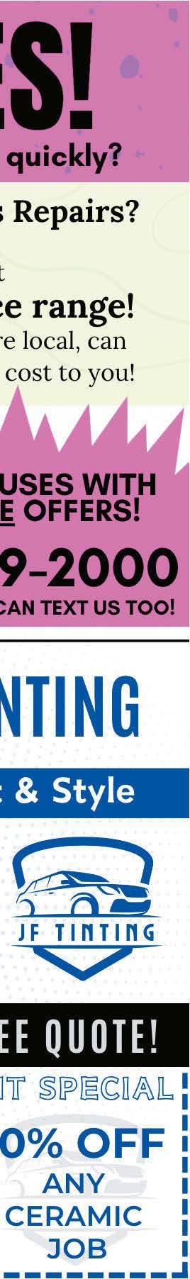 Mobile: 937-557-3489 Office: 937-619-9705 Phone: 937-901-5393 Email: Jon@ExpertProtectionSvcs.com 207 West Franklin Street, Centerville, Ohio 45459 www.expertprotectionservices.com With the complicated nature of insurance and the importance of things that are most precious to you, you cannot afford to have an agent at an 800 number or an offshore call center try to insure and understand your needs. Trust our local Centerville team of insurance experts to sit down with you in our office or at your dining room table to listen to you, develop a plan and provide you with the products that will make you bullet-proof in the face of life’s unexpected events. We have a stable of well-known Insurance companies that we can use to protect the things that mean the most to you, your life, your home, your business and your vehicles. WE PROTECT YOUR FAMILY AND BUSINESS JON BUCHER Commercial & Personal Risk Advisor Expert Protection Services Family of Agencies Bucher Insurance | Greg Fay Insurance Charlie Drain Insurance | Hinkle Insurance Englewood Insurance | Neff & Associates Insurance Eph 6:16 GET QUOTE Learn more at tmsplus.com Locally powered by Contact Jon Bucher to get started. 937-901-5393 jonbucher@townmoneysaver.com LANDSCAPING TREE SERVICE LAWN CARE (513) 932-5623 cardinal-landscaping.net SPRINGTIME IS JUST AROUND THE CORNER Now is a great time to fertilize and irrigate your lawn! $25 OFF YOUR FIRST FERTILIZER APPLICATION OR YOUR SPRING IRRIGATION ACTIVATION Must mention ad. Not valid with other offers. Expires 5/31/24. A lawn you can be proud of from the company you can depend on!