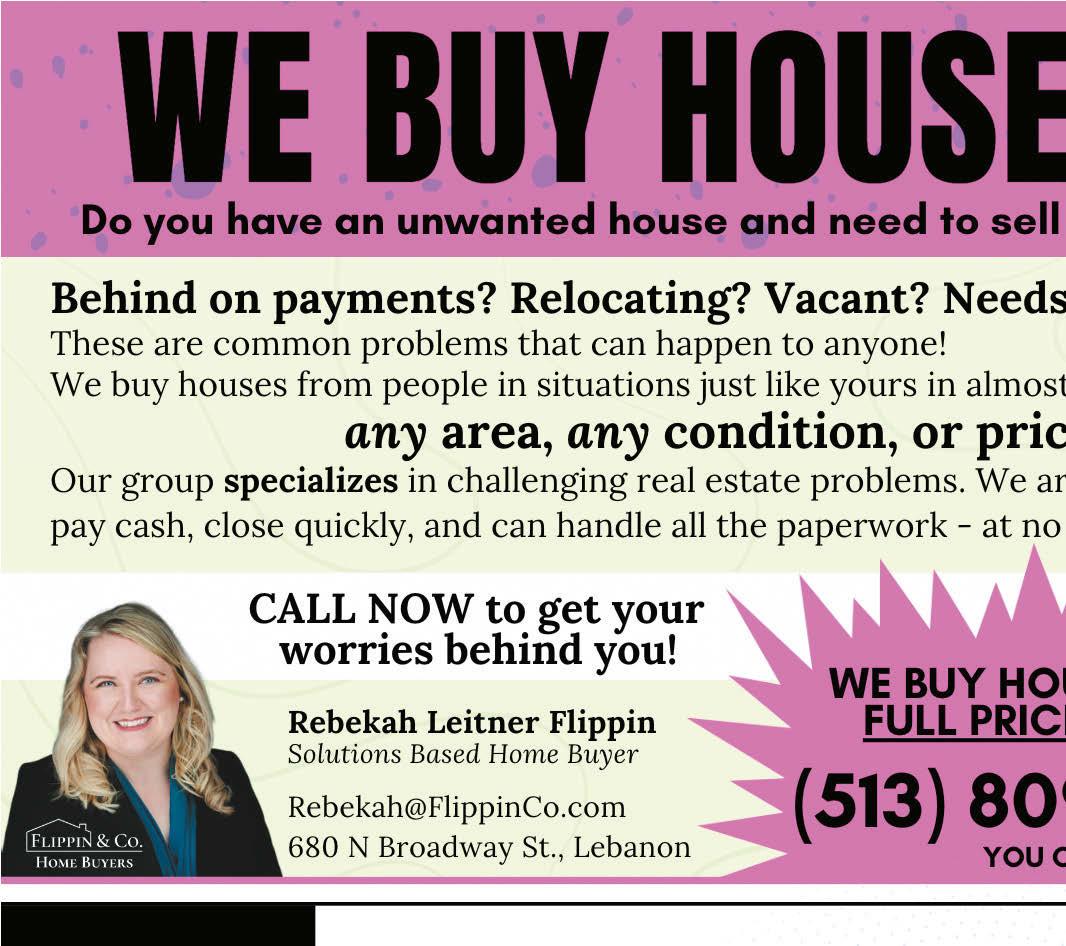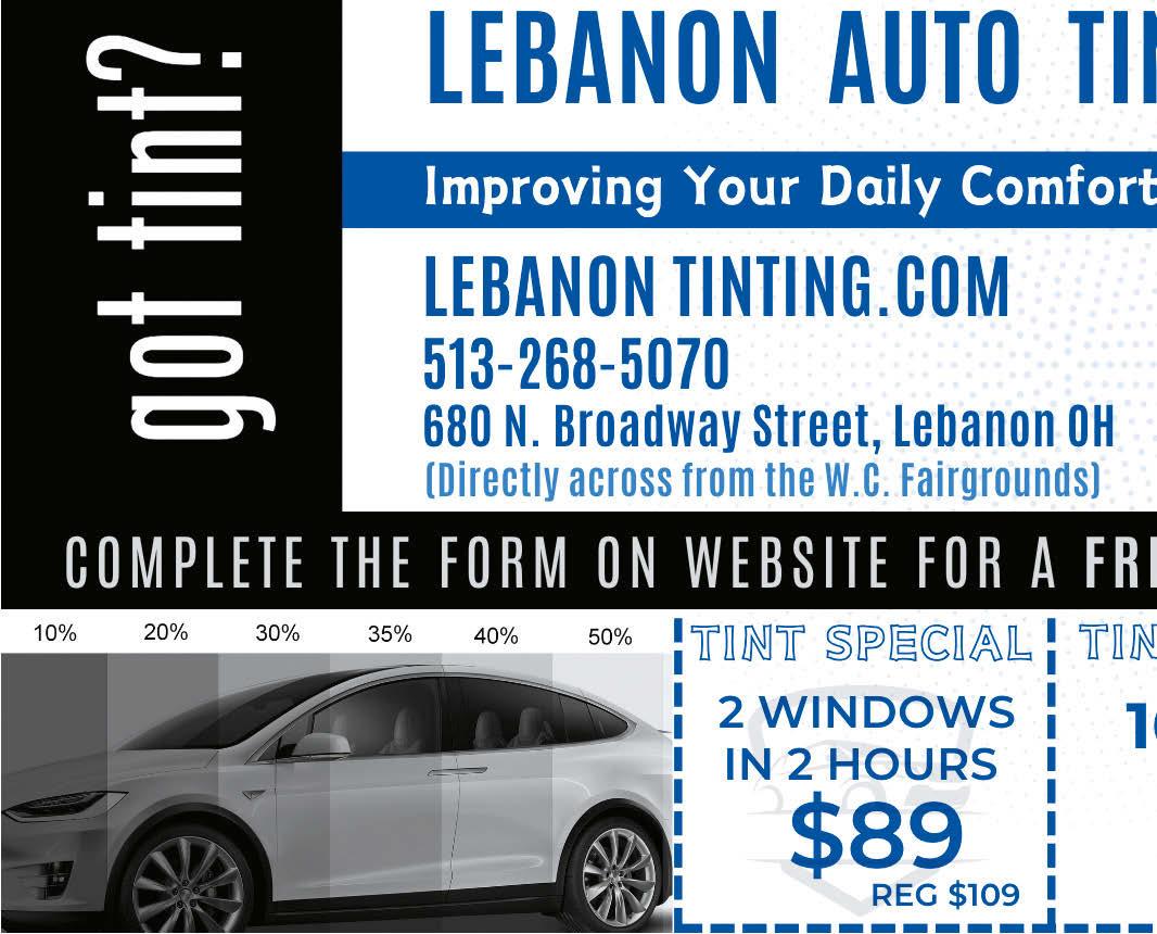 H E. South St E. Mechanic St S. Broadway St E. Main St We serve Dole Whip and Soft Serve Blue Ice Cream - a local fan favorite! 50% OFF any one bulk food item BRANT’S HARDWARE 125 S Mechanic St, Lebanon (513) 932-1060 brantshardware.com HOURS: Mon.-Sat. 10-6, Sun. 12-6 With coupon. Expires 3/31/24. BRANT’S HARDWARE ROOFING • SIDING • WINDOWS • MORE! RESIDENTIAL & COMMERCIAL $1000 OFF Complete Roofing $1000 OFF Complete Siding Call today for details. Cannot be combined with any other offer. Expires 3/31/24. Call today for details. Cannot be combined with any other offer. Expires 3/31/24. Steve Qvick President/CEO Thrush & Son of Lebanon Call Us For A Free Estimate Today! 513.970.7663 733 Columbus Ave. Suite B. Lebanon, OH 45036 ThrushandSonofLebanon.com 875 Columbus Avenue Lebanon www.kirbysautorepair.com 513-934-3999 Full Service Automotive Repair, Maintenance, and Welding Shop Regular maintenance is vital to the life of your vehicle. We’re here to keep you in gear! $10 OFF Each Preventive Maintenance Service With this ad. Expires 4/30/2024. Request An Appointment: SUPPORT CHAMBER LEBANON MEMBERS LEBANONCHAMBER.ORG