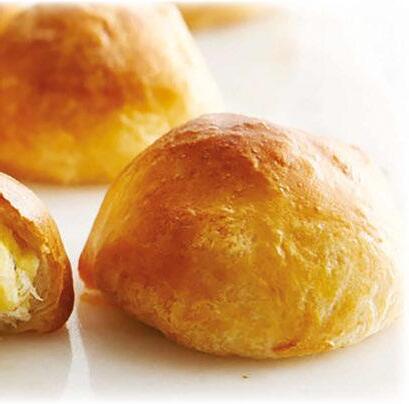 Separate each biscuit in half. Press each into a 4-inch round. Spoon 1 heaping tablespoon full of each eggs, meat & cheese onto center of each round. Gently fold edges up and over lling; pinch to seal. In small bowl, make egg wash by mixing remaining egg and water. Brush on biscuits on all sides. Bake at 350o 15-18 minutes, until golden brown Tip: Also works great in an Air-Fryer!