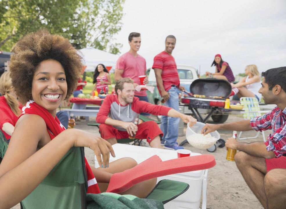 • Grab A Choice Spot: Tailgating veterans know to choose a choice spot in the parking lot to secure extra room for their shindig. That last spot in a row means more party space, as does any spot adjacent to a car-free or grassy area. If you are hosting guests inside your home, make sure there are plenty of seats with a great view of the game so everyone can see the action.