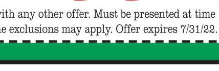 • 1st Class Concrete Track w/ Bridge, Overpass & Underpass • Elevation Changes up to 10 feet • Rookie Go-Karts available for children at least 4 ft. tall • Passenger Tickets Available Coupon expires September 30, 2022 TMS Located behind Par 2 Golf 478-4477 210 E. Alexis Rd. (Bet. Detroit Ave. & Telegraph Rd.) COUPON ALEXIS GO - KARTS ONLY$3 Purchase One Driver Ticket At Regular Price & Get A Second Driver Ticket For Open Every Day Coupon expires September 30, 2022 TMS $20 This coupon good for 20 tokens for OUR BATTING CAGES INCLUDE: • 7 Batting Cages for Slow & Fast Pitch • Ladies 45MPH Fast Pitch Softball • Bats & Helmets Available • Attendant on Duty for Assistance COUPON ALEXIS BATTING CAGES Open Every Day 210 E. Alexis Rd. (Bet. Detroit Ave. & Telegraph Rd.) 478-4477 Tokens Good Anytime! COUPON ONLY$3 TMS 210 E. Alexis Rd. (Bet. Detroit Ave. & Telegraph Rd.) 478-4477 ALEXIS PAR 2 GOLF Coupon expires September 30, 2022 Purchase One 3-Course Ticket At Regular Price & Get A Second 3-Course Ticket For Be A BuddyBring A Buddy To PAR 2 Golf Courses OUR FACILITIES INCLUDE: • Three 18-Hole Par 2 Golf Courses • Special Group & Birthday Party Rates Available Open Every Day Ke e p i n g you comfort abl e i n t h e l an d of t h e fre e an d h ome of t h e brave si n ce 1 957 841-3333 841-3333 ((419) 419) CALL US TO SCHEDULE YOUR CALL US TO SCHEDULE YOUR FFREE REE CONSULTATION! CONSULTATION! WWW.OHCOMFORT.COM WWW.OHCOMFORT.COM $20.00 OFF New PCSA (Preferred Customer Service Agreement) With TMS Coupon - Expires July 29, 2022 2035 S. Reynolds Rd. Toledo, OH 43614 | phone (567) 777-6611 Valid at the Lewis Ave Location only TMS coupon must be presented at time of donation 1 coupon per customer. Expires 8/1/2022 New Customers Only Ex tra Bonus! $15.00 CSL Plasma Scan to lear n more about our COVID-19 updates. Plus download our Safe Passage Letter to simplify access to our centers. CSL Plasma Y Good for ou. Great for Life. U.S. GOVERNMENT RECOGNIZES PLASMA CENTERS AS ESSENTIAL CRITICAL INFRASTRUCTURE. Together Donate plasma and earn up to $825 per month*