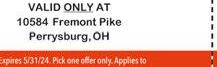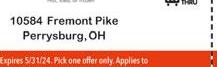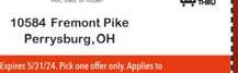 STORE HOURS Mon, Tues, Wed, Fri 9am-5:30pm Thurs 9am-6pm • Sat 10am-4pm Closed Sun 1027 N. Main St. (Route 25) Across the street from Dollar Tree 419-819-4274 BOWLING GREEN MAUMEE 1398 Conant Chesterfield Plaza Next to Five Guys, Across from Meijer 419-740-3377 Spring Cleaning is Easy with our Ultra Lightweight Vacuums! We carry Pet & Allergy Vacuums! $1495 Quick Fix Vac Repair Special Some restrictions apply. Cannot be combined with other offers. Limit 1 per use. Exp.5/31/24 PB Miele Products With coupon. Some restrictions may apply. Limit 1 per use. Exp. 5/31/24 PB 40%OFF 30%OFF Bags • Belts & Filters Excludes Riccar & Sebo In Stock Only Some restrictions may apply. Not valid with other offers. Exp. 5/31/24 PB $100 OFF With coupon. Restrictions may apply. Exp. 5/31/24 PB Any AMERICAN MADE VACUUM We will double any competitors coupon! GreatLakesVac.com 5demayotoledo.com AIRPORT/WEST 7011 Airport Hwy. 41-866-8229 ROSSFORD 1213 Schreier Rd. 419-666-3288 ALEXIS/NORTH 304 E. Alexis 419-478-7530 NEW LOCATION 2825 Glendale 419-796-4718 MEXICAN GRILL & BAR Serving only QUALITY, FRESH ingredients at Affordable Prices! NOW 4 LOCATIONS TO SERVE YOU! HAPPY HOUR MON-SAT 3-5:30 PM APPETIZERS, BEER & MARGARITAS Anypurchase of $40 or more ExcludesAlcohol.WithTMScoupon. Dineinonly.Onecoupon perperson.Notvalidwith anyotheroffers. Exp.5/31/24 LUNCH Up to two people per coupon. Dineinonly.WithTMScoupon. Cannot be combined with other offers. Exp.5/31/24 LunchSpecial LunchMenuOnly. Sun May12 Mother’sDay 1/2 OFF $5 off $599 Mom’s Meal WithTMScoupon.Dineinonly.Notvalidwithanyotheroffers. Validon5/12/24only. FREE Kids Eat With purchase of an adult meal. Up to two kids per coupon. Valid at the Glendale location only. CINCO DE MAYO all weekend May 3, 4 & 5 food, fun and music! Visit our Glendale location after your Zoo visit! Dineinonly.WithTMScoupon.Cannot becombinedwithotheroffers. Exp.5/31/24