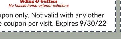 937.764.3850 myfivestarhomeservices.com FALL PRE-SEASON SALE Lowest Prices of the Year! (On Qualifying Equipment) 80% E ciency, up to 60k BTU. 13 SEER, up to 2 Ton. Permits not included. Code update not included. Not valid with other o ers or discounts. Must have existing air conditioner. Some restrictions may apply. Expires 9/27/22 96% E ciency, up to 60k BTU. 13 SEER, up to 2 Ton. Not valid for 80% to 96%. Permits not included. Code update not included. Not valid with other o ers or discounts. Must have existing air conditioner. Some restrictions may apply. Expires 9/27/22 80% E ciency, up to 60k BTU. Must mention coupon with scheduling. Not valid with other o ers or discounts. Some restrictions may apply. Call for any questions or concerns. Expires 9/27/22. 96% E ciency, up to 60k BTU. Not valid for 80% to 96%. Must mentioncoupon with scheduling. Not valid with other o ers or discounts. Some restrictions may apply. Call for any questions or concerns. Expires 9/27/22 WHOLE HOUSE HUMIDIFIER Must mention coupon with scheduling. Not valid with other o ers or discounts. Some restrictions may apply. Up to 3000 square foot home. Expires 9/27/22 499 Must mention coupon with scheduling. Not valid with other o ers or discounts. Some restrictions may apply. Expires 9/20/22 must schedule by Sept 20 up to 3000 square foot house FURNACE & AC 96% HIGH-EFFICIENCY 7,999 FURNACE & AC 6,999 GAS FURNACE 96% HIGH-EFFICIENCY 3,999 GAS FURNACE 3,499 Must mention coupon with scheduling. Not valid with other o ers or discounts. Some restrictions may apply. Expires 9/27/22 Must mention coupon with scheduling. Not valid with other o ers or discounts. Some restrictions may apply. Expires 9/27/22 Must mention coupon with scheduling. Not valid with other o ers or discounts. Some restrictions may apply. Expires 9/27/22 HVAC HVAC HVAC HVAC PLUMBING PLUMBING PLUMBING HVAC HVAC HVAC 14 SEER, up to 2 Ton. Permits not included. Code update not included. Not valid with other o ers or discounts. Must have existing heat pump. Some restrictions may apply. Expires 9/27/22 ELECTRIC FURNACE & HEAT PUMP 6,999 29 TANKLESS WATER HEATER OFF 500 TANK WATER HEATER OFF 150 DRAIN SERVICES 10 OFF Must mention coupon with scheduling. Not valid with other o ers or discounts. Some restrictions may apply. Expires 9/27/22 FREE HOME AIR CLEANER with purchase of furnace and AC system (Reg. $899) with any completed paid repair Must mention coupon with scheduling. Not valid with other o ers or discounts. Some restrictions may apply. Expires 9/27/22 FREE SERVICE CALL HVAC HVAC & PLUMBING (Reg. $99) (Reg. $99)